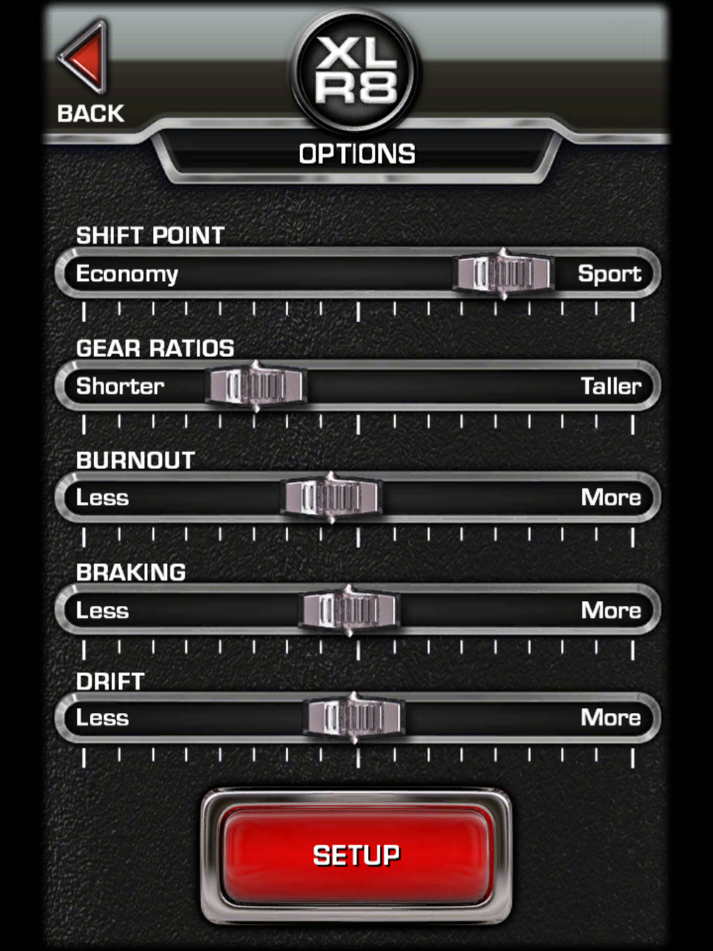 Once secured inside your vehicle, XLR8 uses the accelerometers of your device to realistically respond to acceleration, braking and cornering forces.