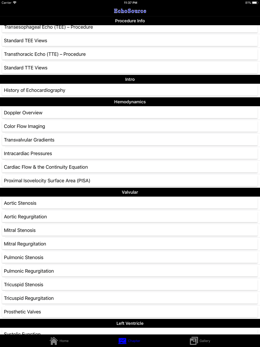 EchoSource provides a detailed overview of clinical disorders and their evaluation using echocardiography, incorporating educational figures and videos as well as reviews of pertinent medical literature. Whether you are a beginner just learning standard echocardiography imaging views, or a practicing clinician needing a quick reference to guideline-based echocardiographic criteria for diagnosing the severity of valvular heart disease, EchoSource is the ideal application to assist you.