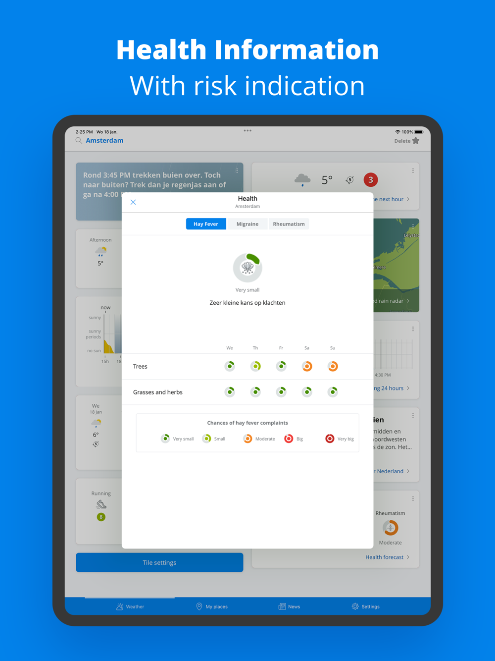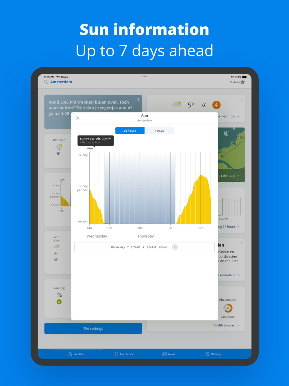 Should I wear sunglasses? Can I go for a run? Can we have a barbecue tonight? The app will answer these questions for you. This way you can make the most out of the weather.