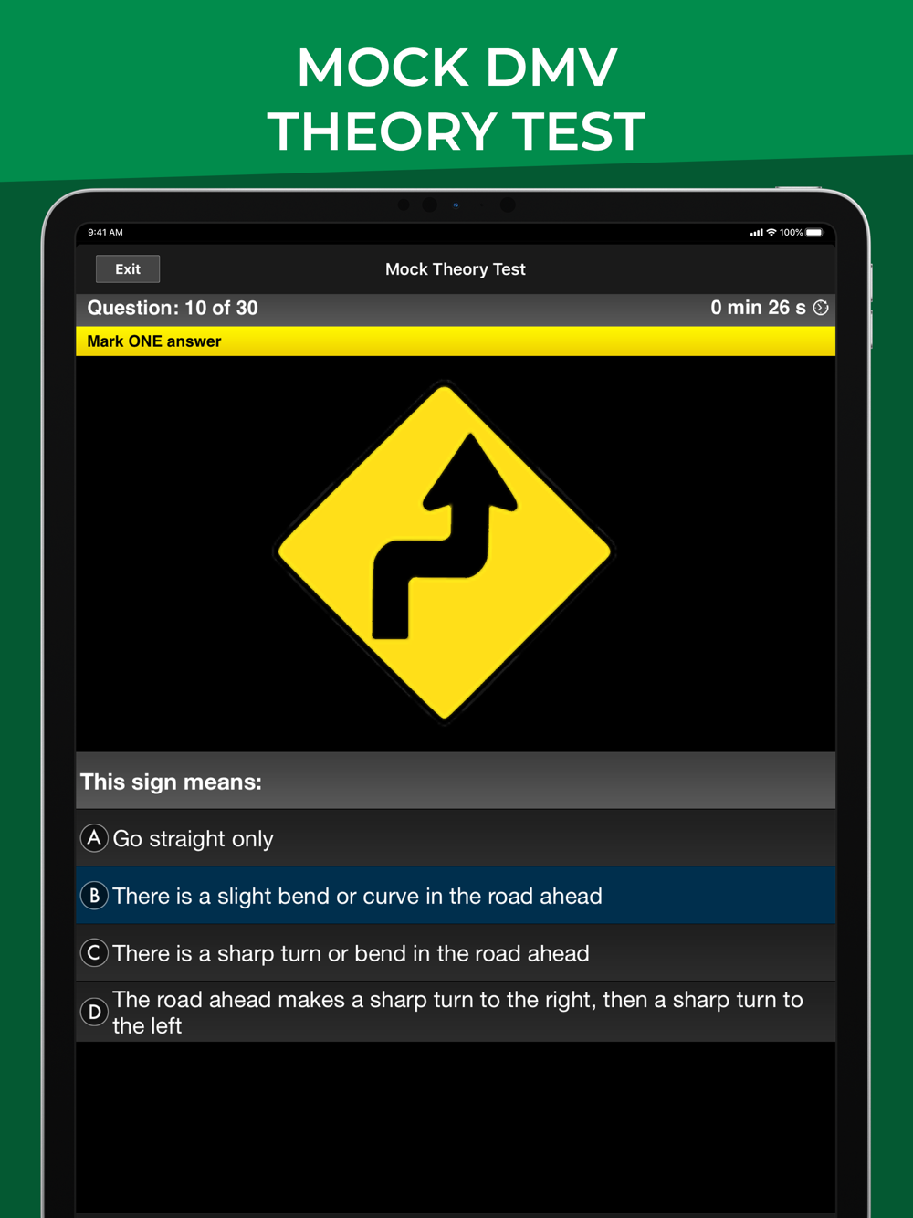 Studying for a permit test in the United States? Pass your DMV Driving Test the first time! With this application you will make progress more quickly than with any other traditional method, as you can take the tests wherever and whenever you want, without the need to be connected: at the bus stop, in a bar, in the classroom, at work or at the dentist’s waiting room…!