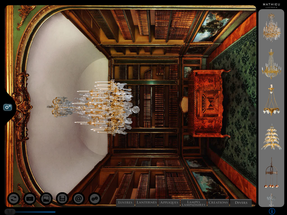 Cette application ludique vous permettra d’intégrer facilement tous lustres, lanternes, lampes, appliques ou lampadaires dans vos intérieurs, que vous aurez préalablement photographiés à l’aide de votre I-pad, I-phone…