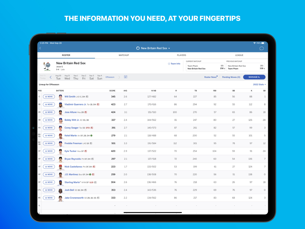 - Follow your players all season long with live, real-time matchup and pro game scoring.