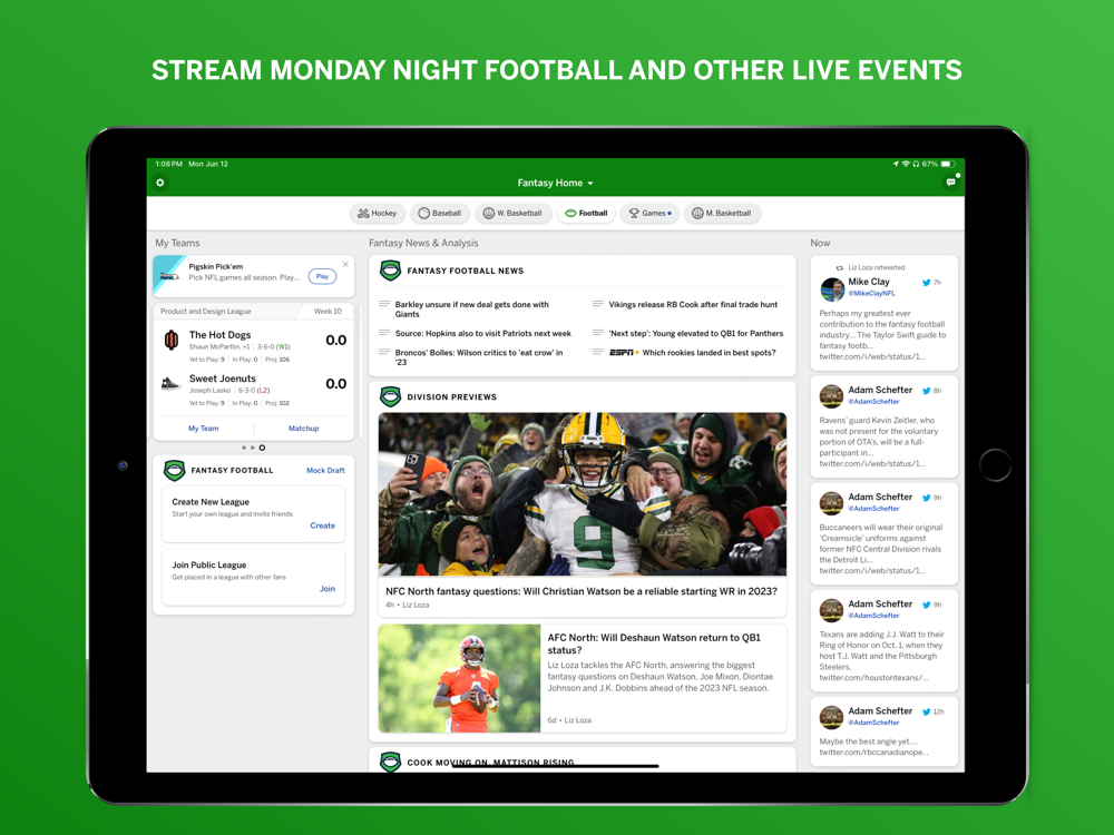 With the #1 fantasy sports app, fantasy sports are always in-season. Play ESPN Fantasy Football, Fantasy Men's Basketball, Fantasy Women's Basketball, Baseball and Hockey or check out one of our many prediction games, available for most sporting major sporting events. All ESPN games are completely free to play.