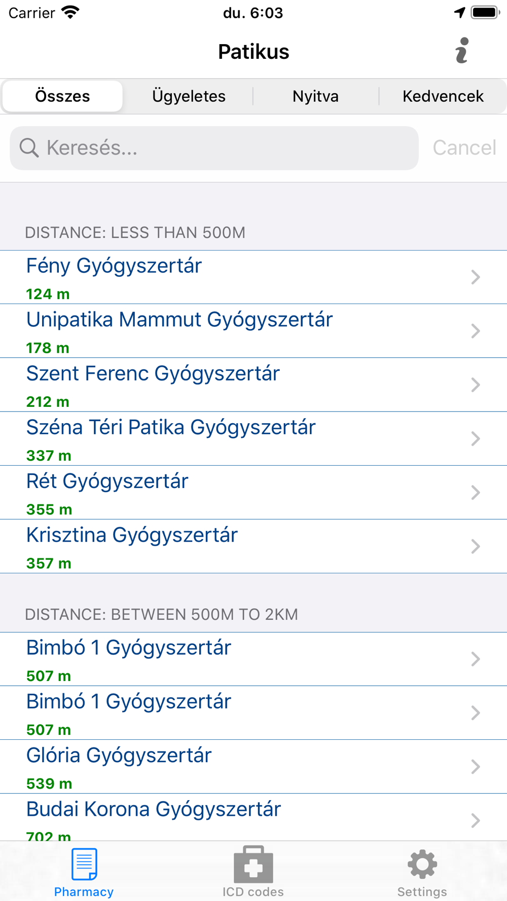 This app is made for people seeking pharmacy in Budapest. The app calculates the distances of a pharmacy from Your current position and shows it in a list and on map.