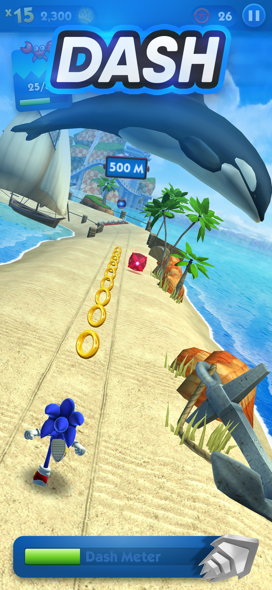 Sonic Dash supports iPhone 4 and higher, iPad 2 and higher, and iPod touch v5 and higher.