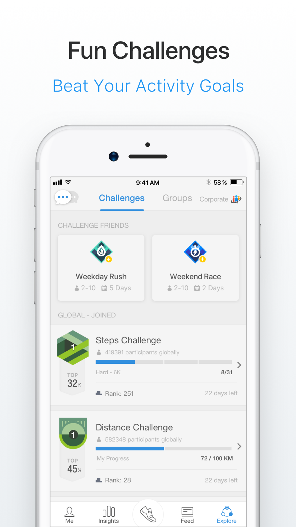 -We offer a variety of activity challenge types. You can aim for the top spot on a leaderboard, set a daily goal, or work towards a long-term step target
