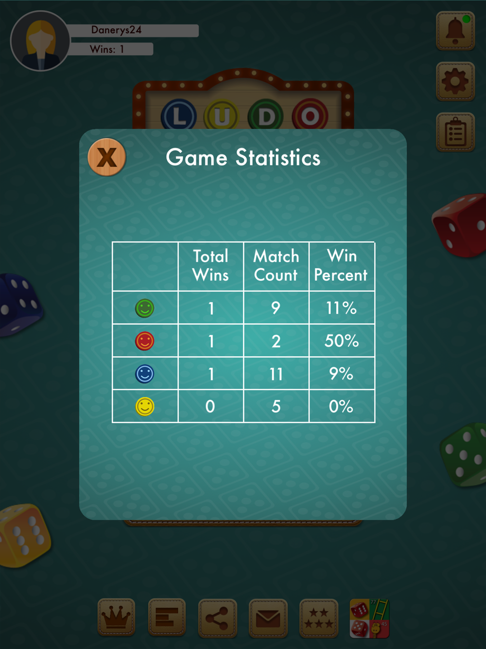 Play with your friends, family or a random player across the world by logging into Game Center / Facebook or as anonymous. You have options to invite your friends or join a match hosted by your facebook and Game Center friends. You can see your total wins & your rank in Global Leaderboards. There are several achievements to unlock in the kingdom of Ludo.