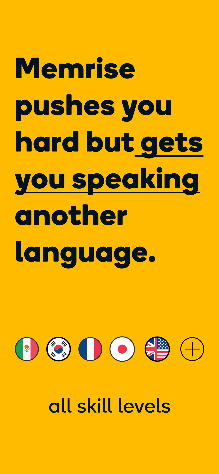 Download our app for free and start learning with Memrise today: Learn French, Spanish (Spain), Spanish (Mexico), German, Korean, Japanese, Japanese (no script), Turkish, Italian, Chinese (simplified), Dutch, Portuguese (Portugal), Portuguese (Brazil), Russian, Swedish, Norwegian, Polish, Danish, Slovenian, Icelandic, Yoruba, Mongolian, English (UK) and English (US)!