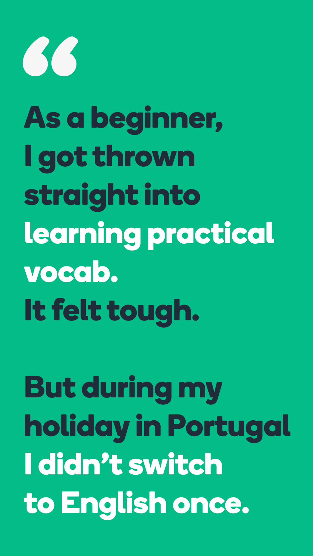 Beth Williams - "My Fiancé is Portuguese so I wanted to learn their language to communicate easily. Over the year I can now string small sentences together. I don't think I could have done it without the help of Memrise."
