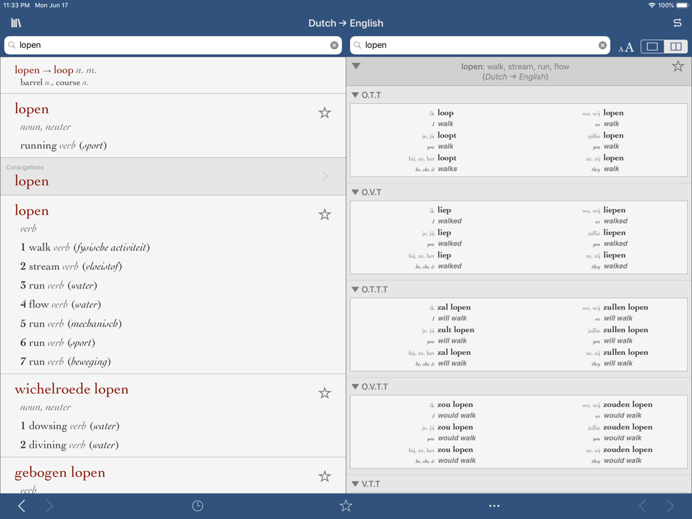 • Conjugations for thousands of Dutch and English verbs