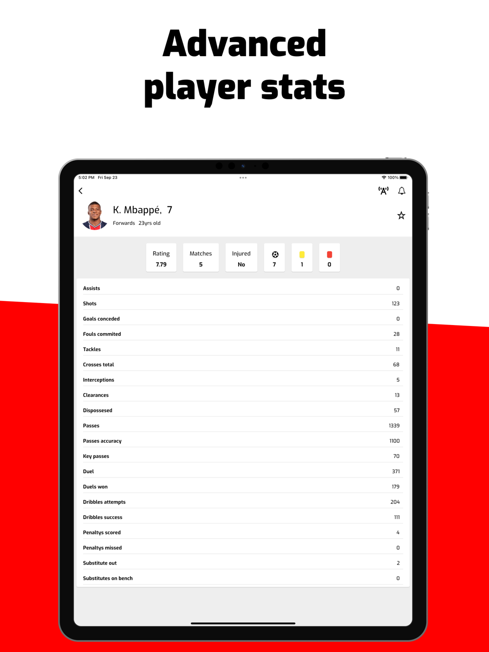 Explore team pages featuring lineups, leagues, and the latest games. Stay updated on top teams like PSG, Real Madrid, Barcelona, Manchester United, Chelsea, Liverpool, AC Milan, Bayern Munich, and more. Delve into advanced player stats for stars like Kylian Mbappe, Lionel Messi, Neymar, Cristiano Ronaldo, Erling Haaland, and Karim Benzema. Receive live event notifications involving your favorite players.