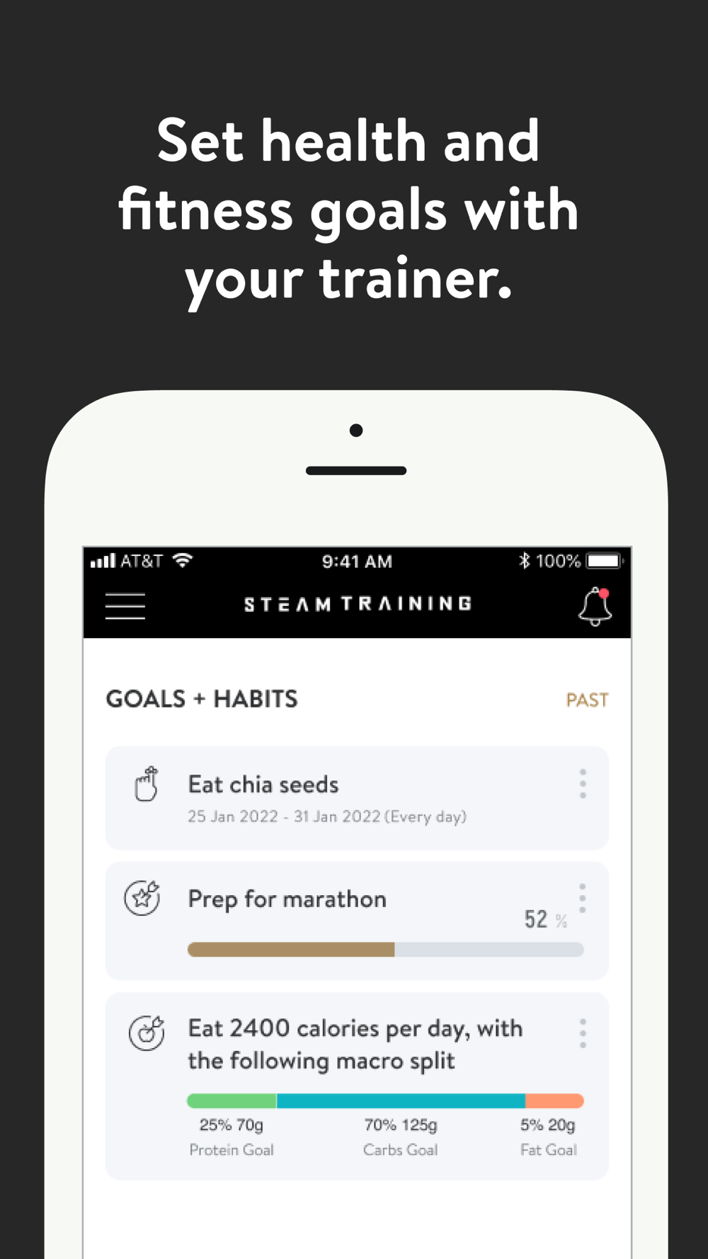 With the Steam Training App, you will have access to workout programs designed specifically to help you reach your fitness and health goals! You can follow & track your workouts, your nutrition, your lifestyle habits, measurements and results–all with the help of your coach.