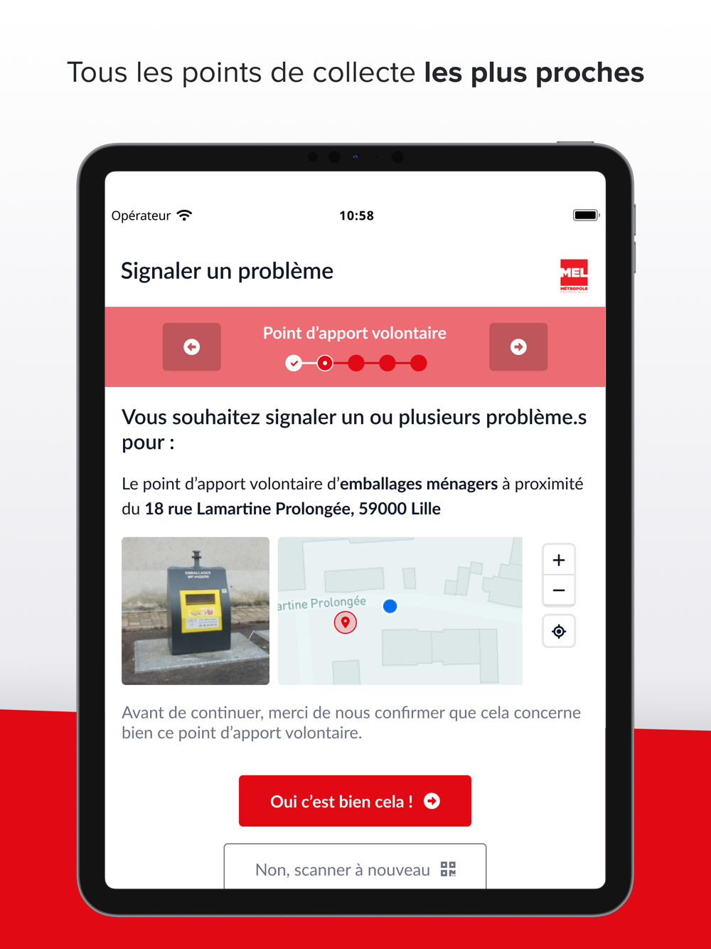 L'application Déchets & Propreté de la Métropole européenne de Lille permet à tout usager de signaler une anomalie sur un point d’apport volontaire.