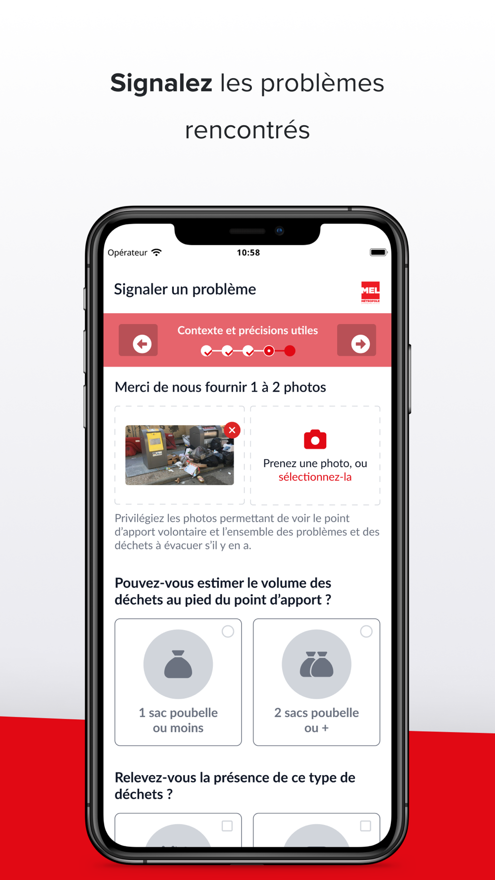 L’app permet de signaler tout dysfonctionnement ou désordre concernant un point d’apport volontaire et ses environs immédiats :