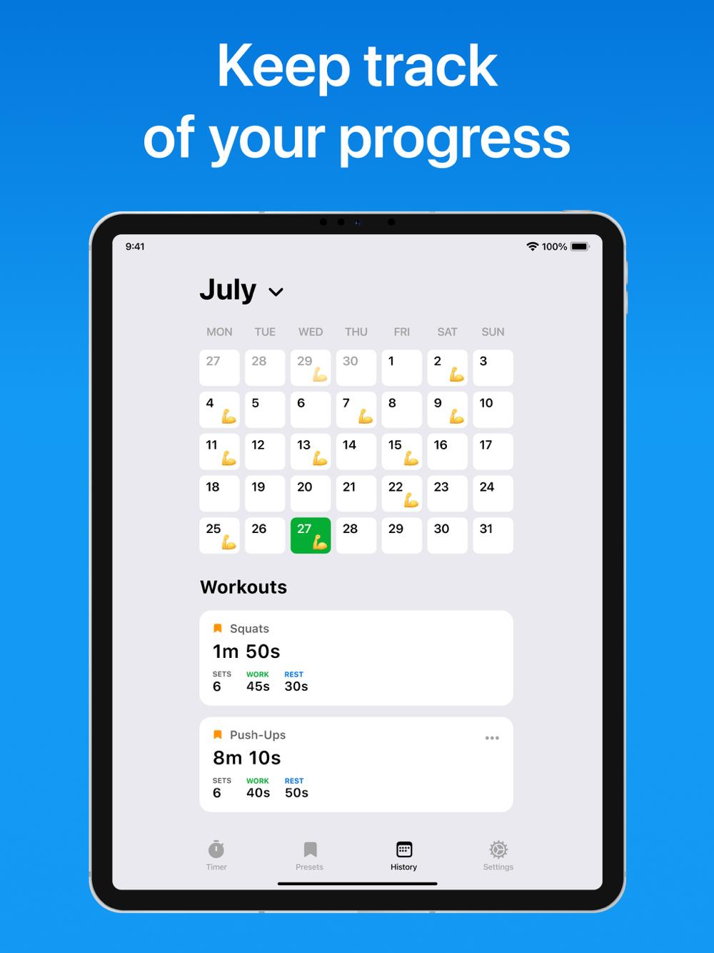 Each completed exercise motivates you to achieve higher goals. Enjoy your training and achieve your fitness goals with the interval timer.