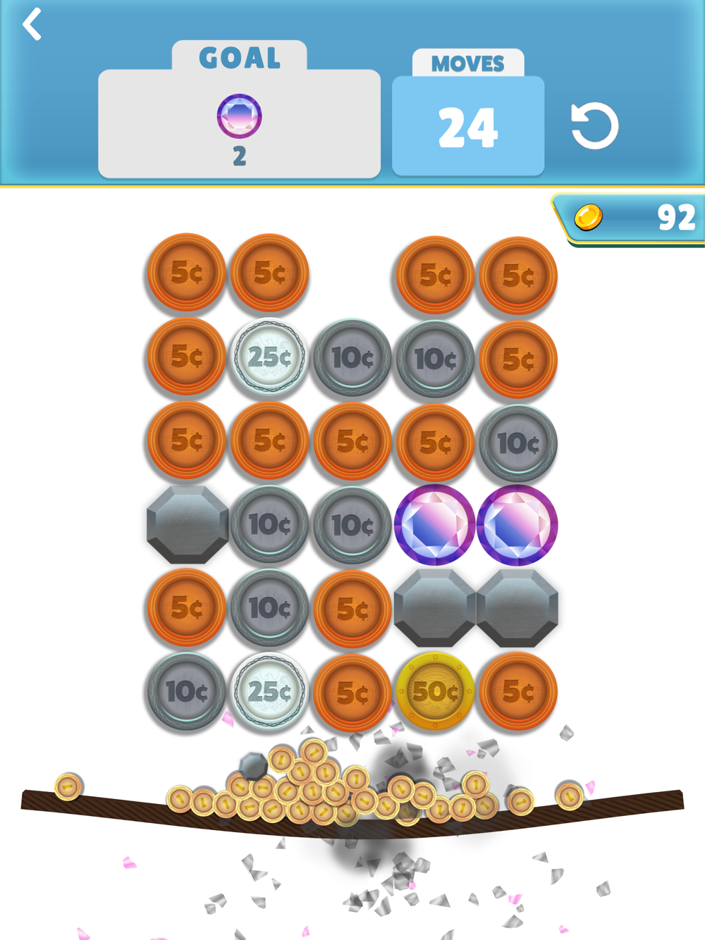 Fun puzzle game. Collect target coins in order to finish the level. Try to be as efficient as possible to not get of the moves!