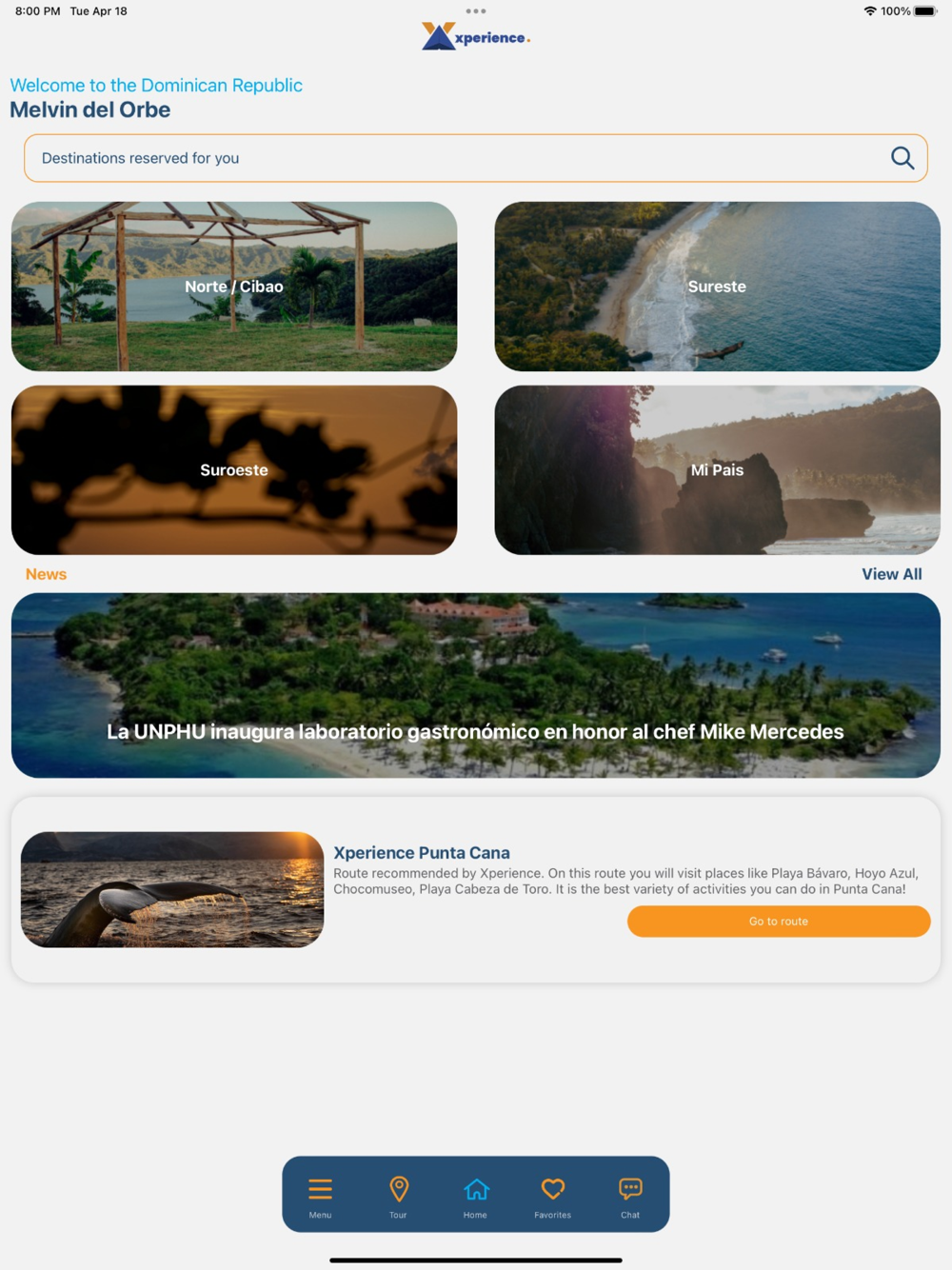 Welcome to Xperience, the most complete tourist application to explore the Dominican Republic! With Xperience, you will have access to a wide variety of resources and tools to plan and enjoy your vacation in this beautiful Caribbean country.