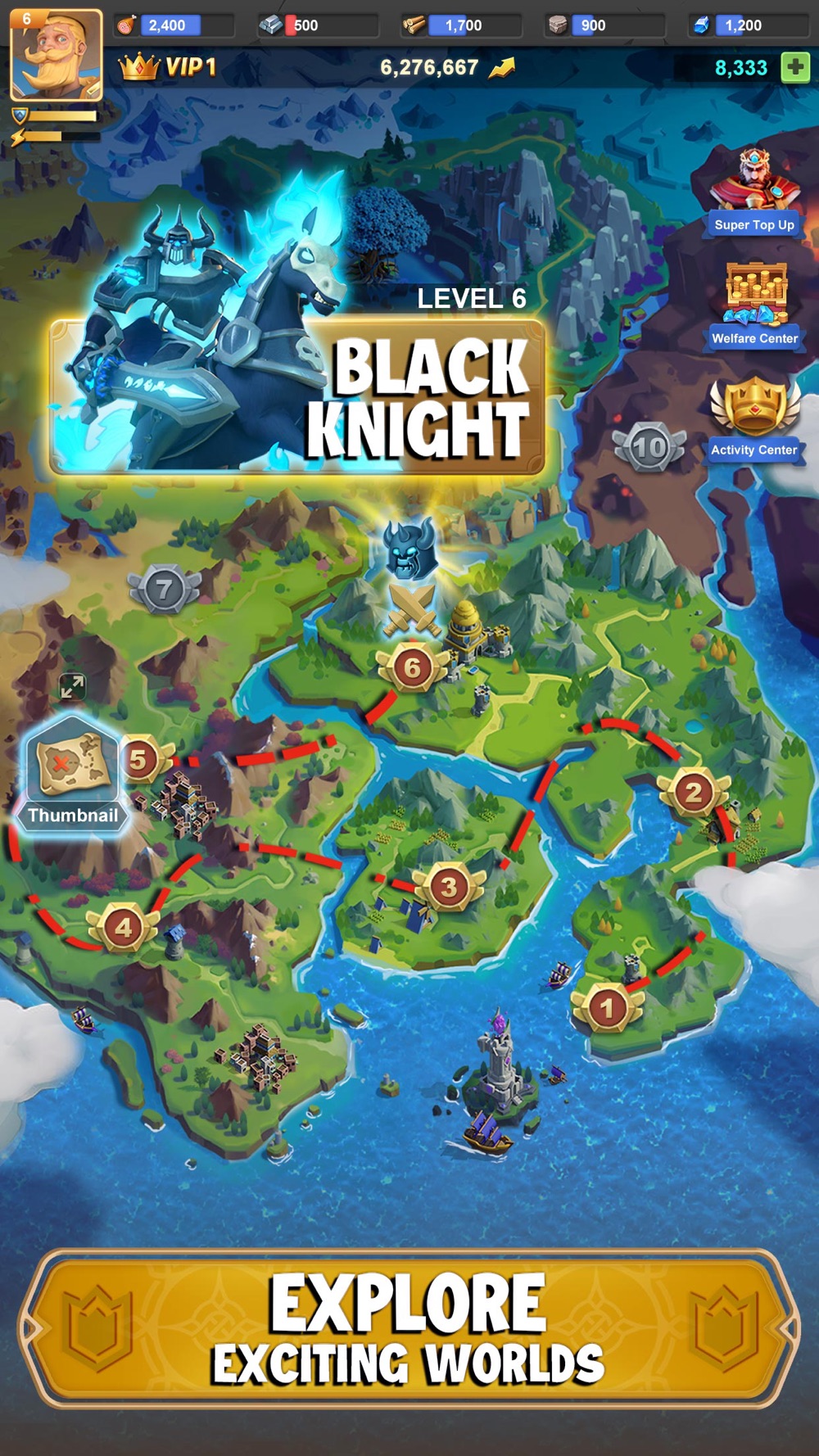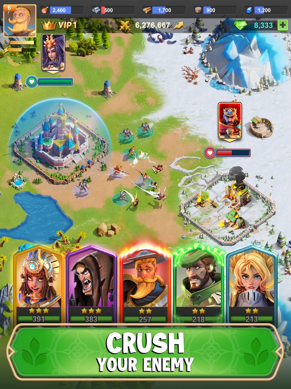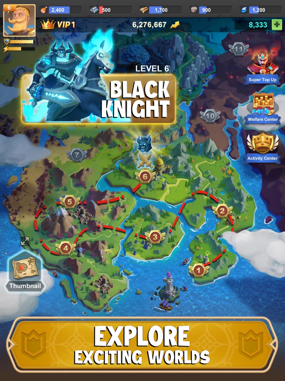 Construct 30+ buildings to upgrade your castle, train your troops, gather resources, research new technologies, and defeat powerful monsters and other players on the vast world map.