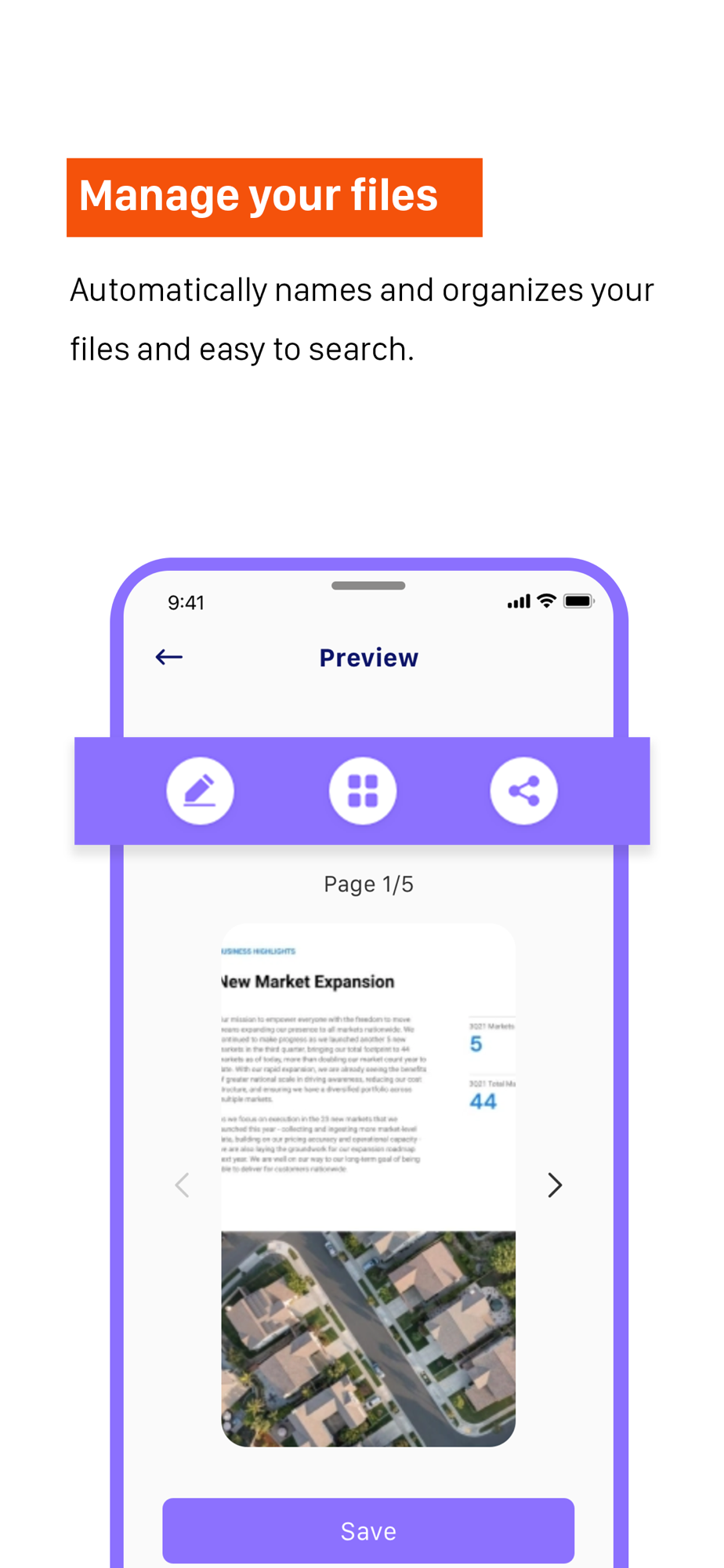 Automatically names and organizes your files and easy to search.