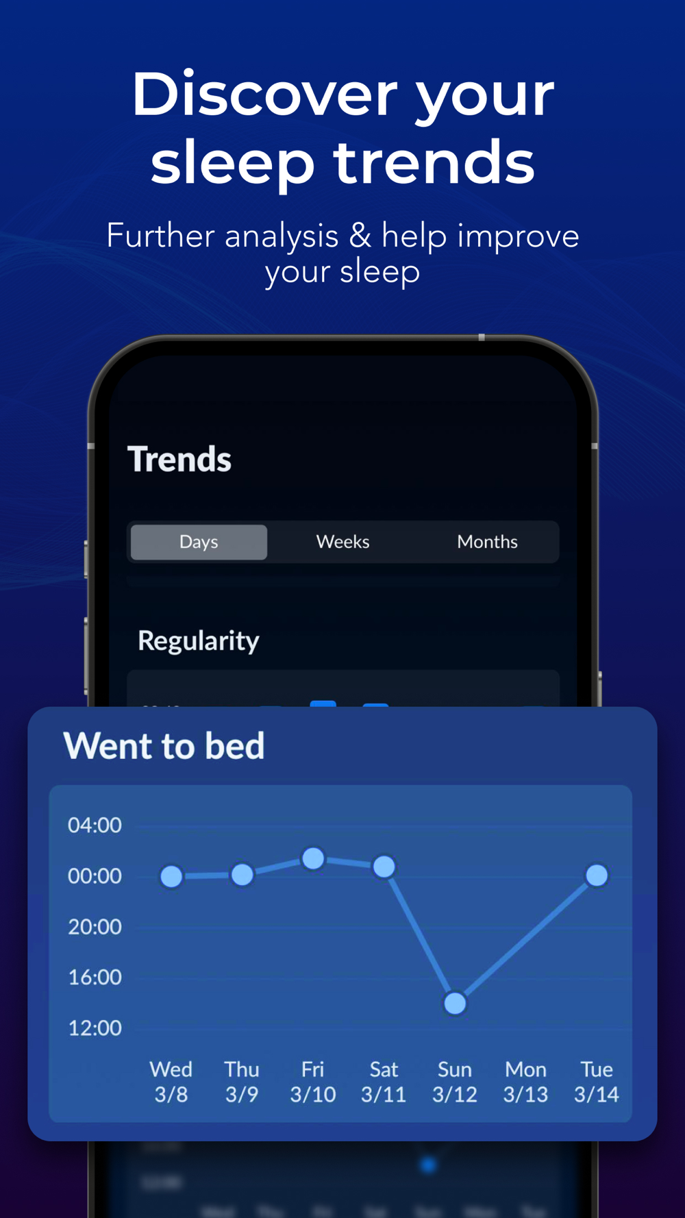 • Sound recorder & Trends - Capture snoring, sleep talking, and other sounds and view your trends