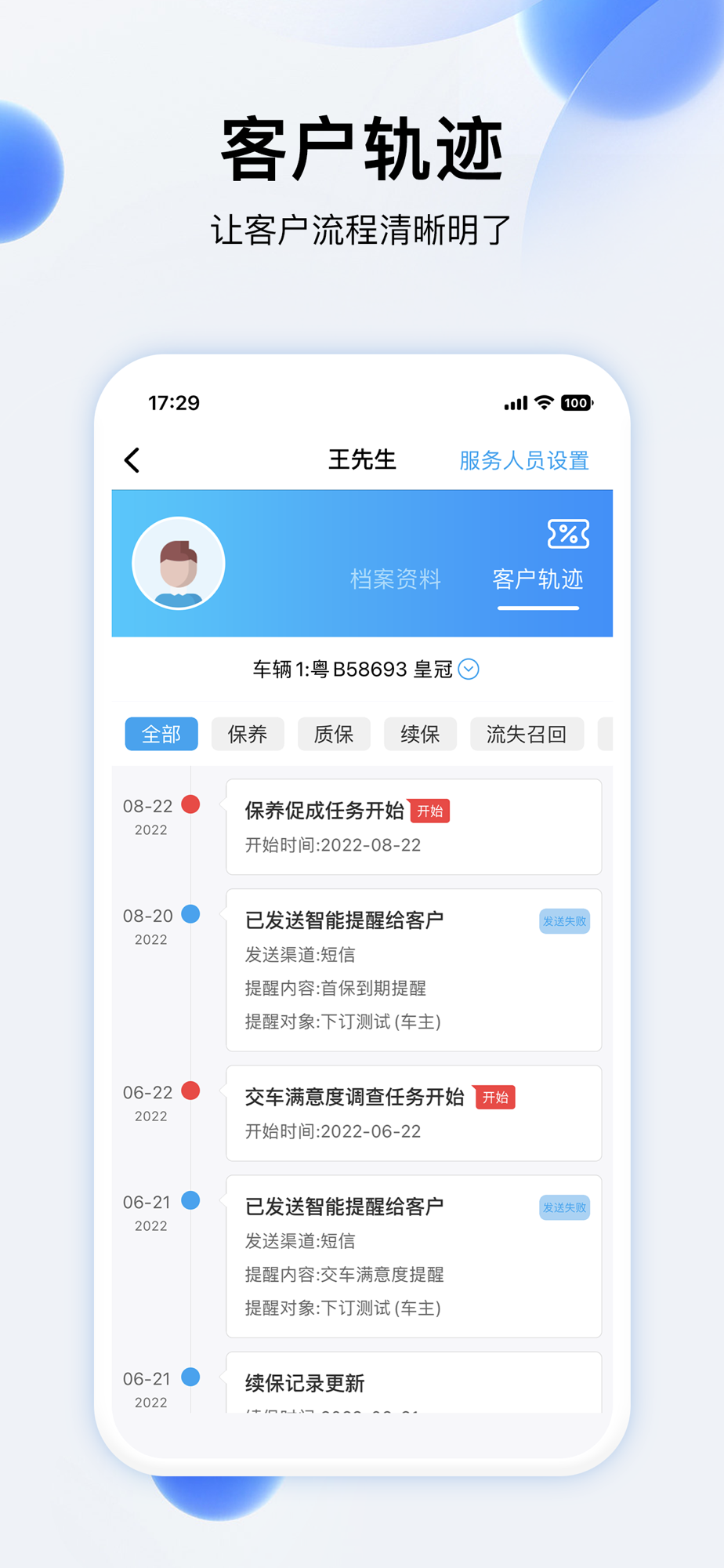 云客服crm 是一款售后招揽移动app,彻底革新汽车4s店售后服务价值链,简化员工复杂繁琐的售后招揽流程,以任务形态提醒员工进行客户招揽,多渠道提醒车主保养、年检、续保到期等;提升4s店的售后服务水平;