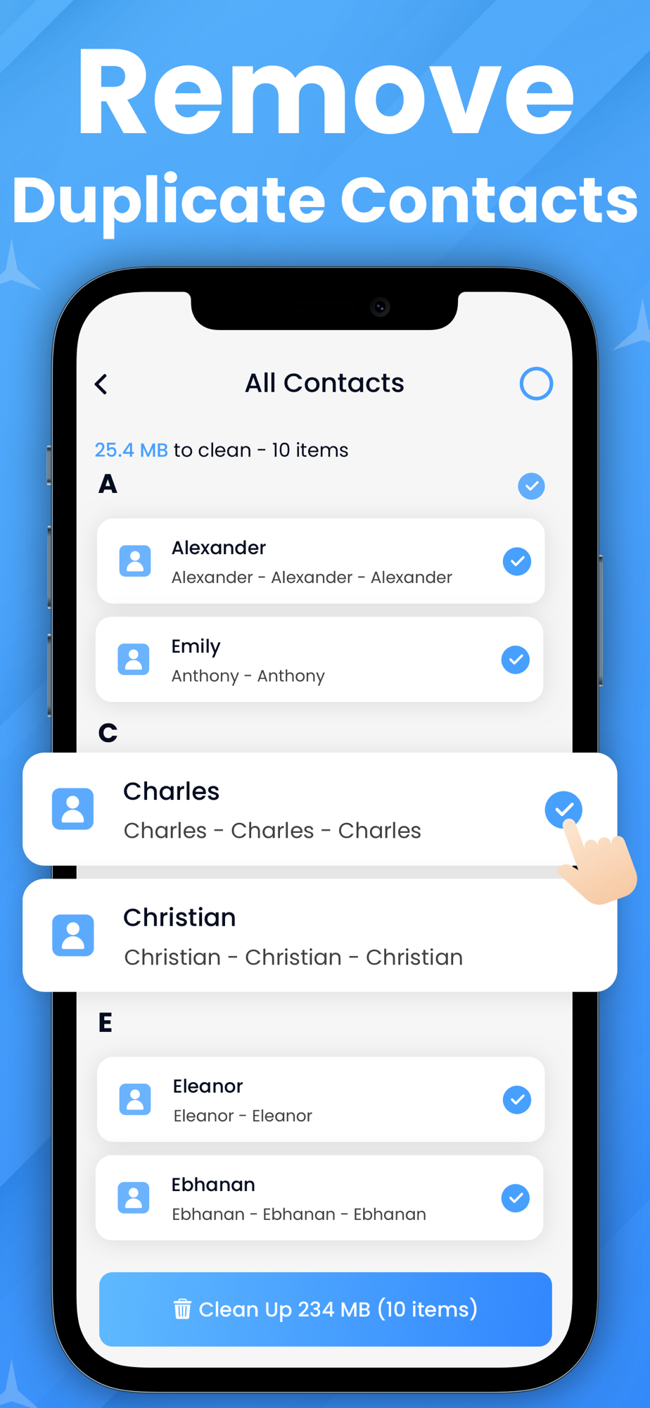 - Clean up duplicate contacts: Delete incomplete & duplicate contacts.