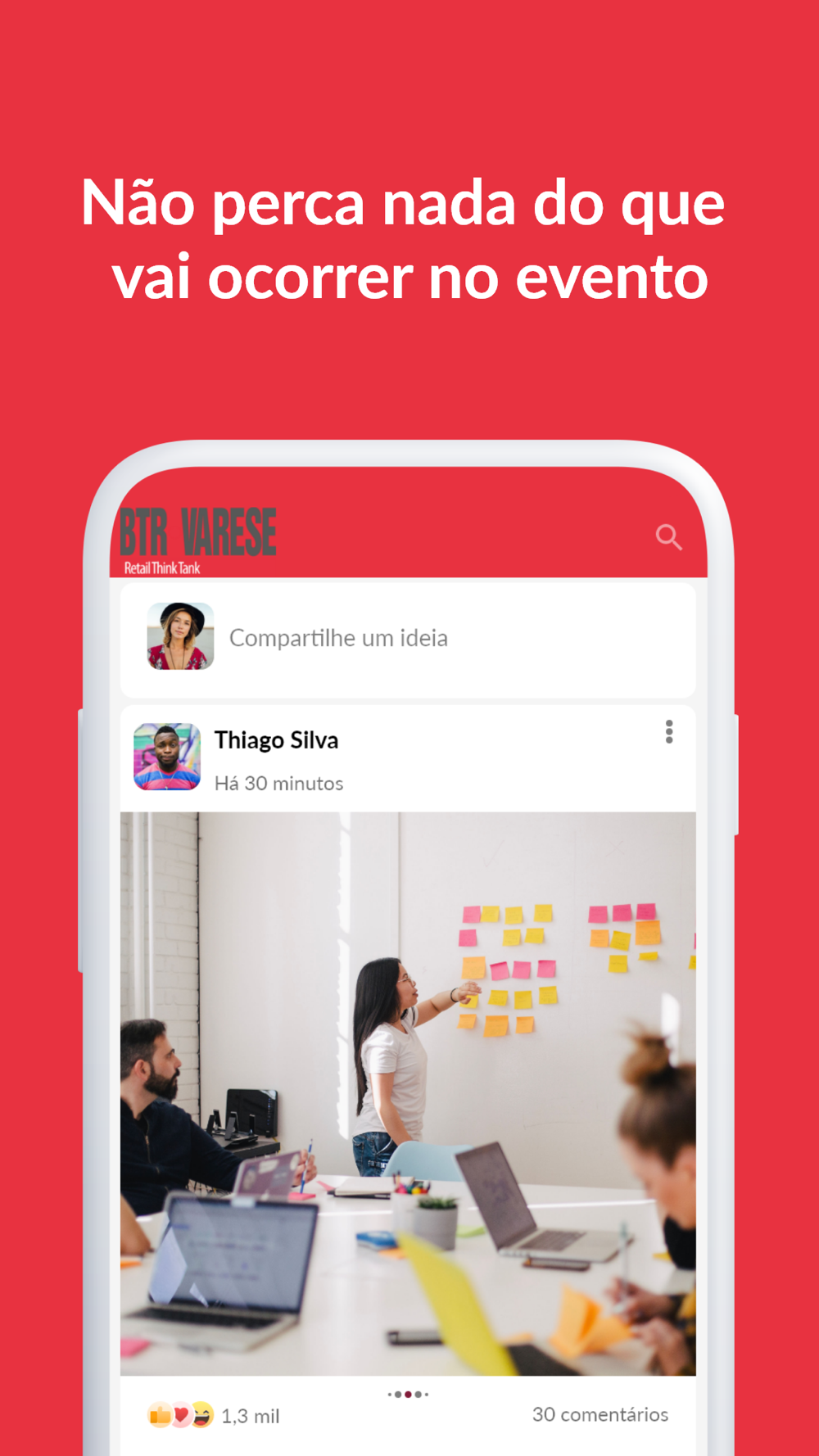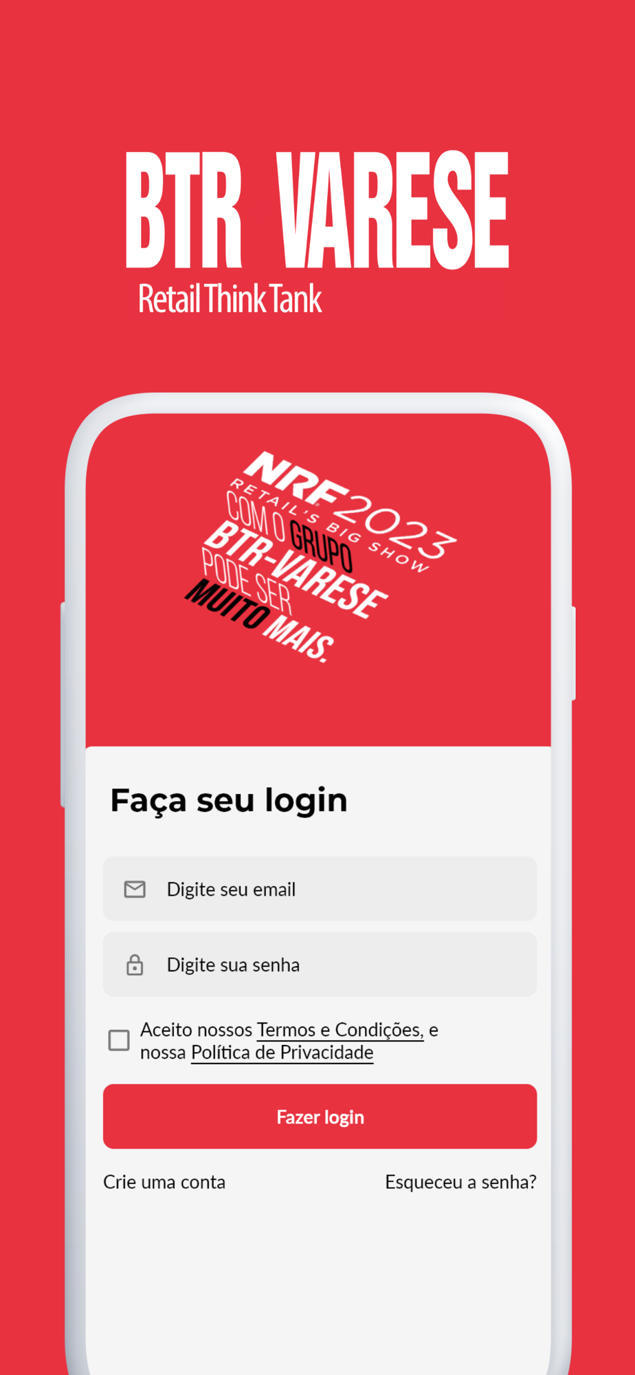 Com o aplicativo BTR-Varese NRF 2023, você tem acesso a uma rede social exclusiva, pode fazer novos contatos, enviar perguntas aos palestrantes, trocar mensagens com outros participantes, enfim, interagir com a comunidade. Além disso, você pode consultar a programação, avaliar conteúdos, dar feedback e responder quizzes. Utilize o APP e aproveite ao máximo os recursos.