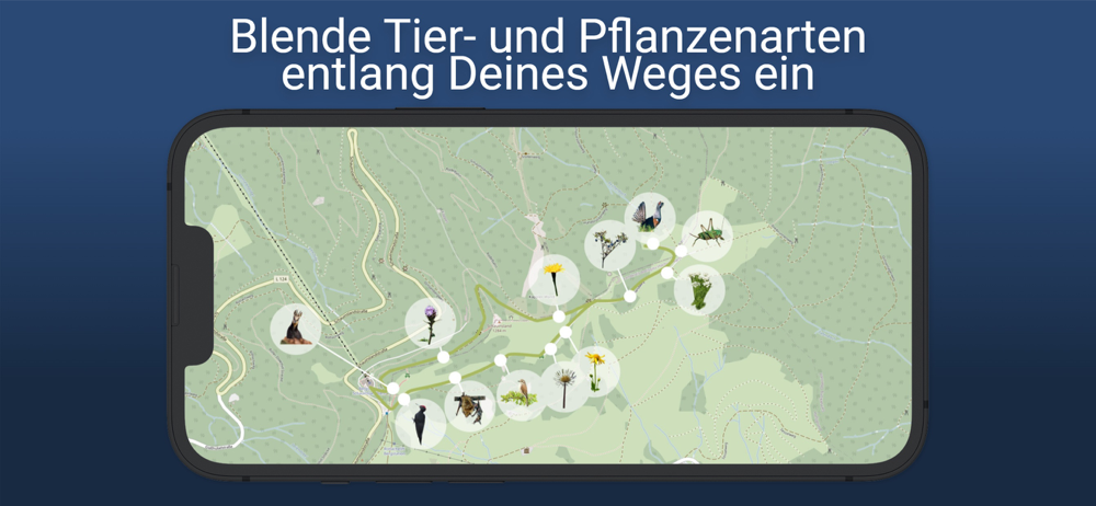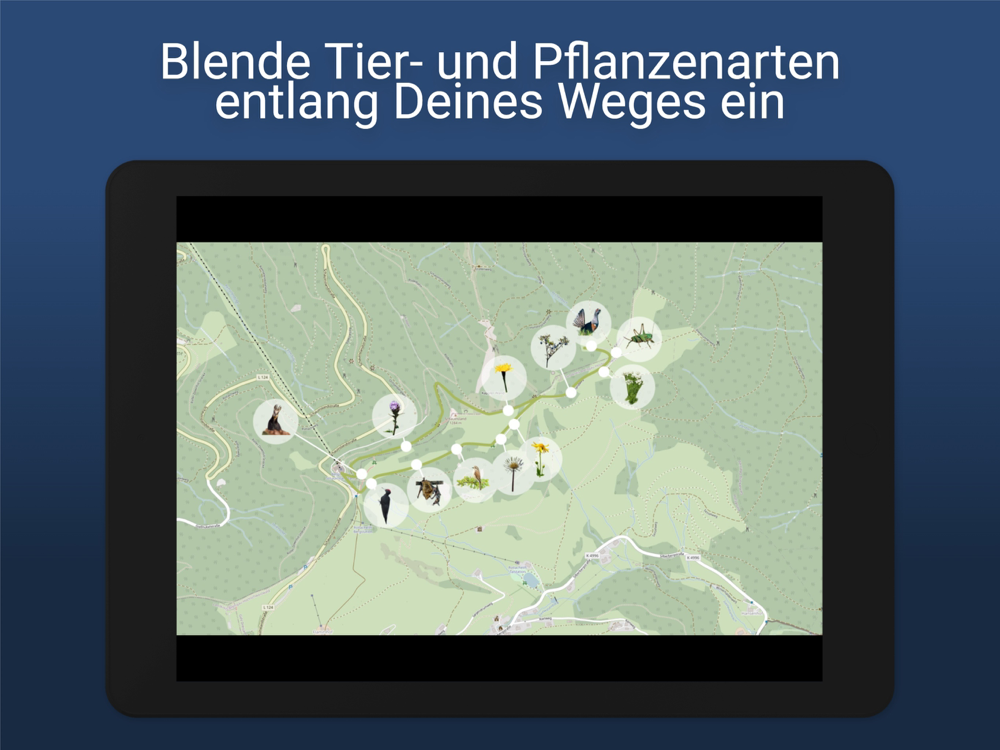 Besucher*innen können mit Hilfe eines Geländespiels in der App verborgene Schätze des Biosphärengebiets am Schauinsland entdecken und erhalten per Augmented Reality die Möglichkeit, Tier- und Pflanzenarten über die Smartphone Kamera in ihren natürlichen Habitaten einzublenden und in der App zu sammeln.