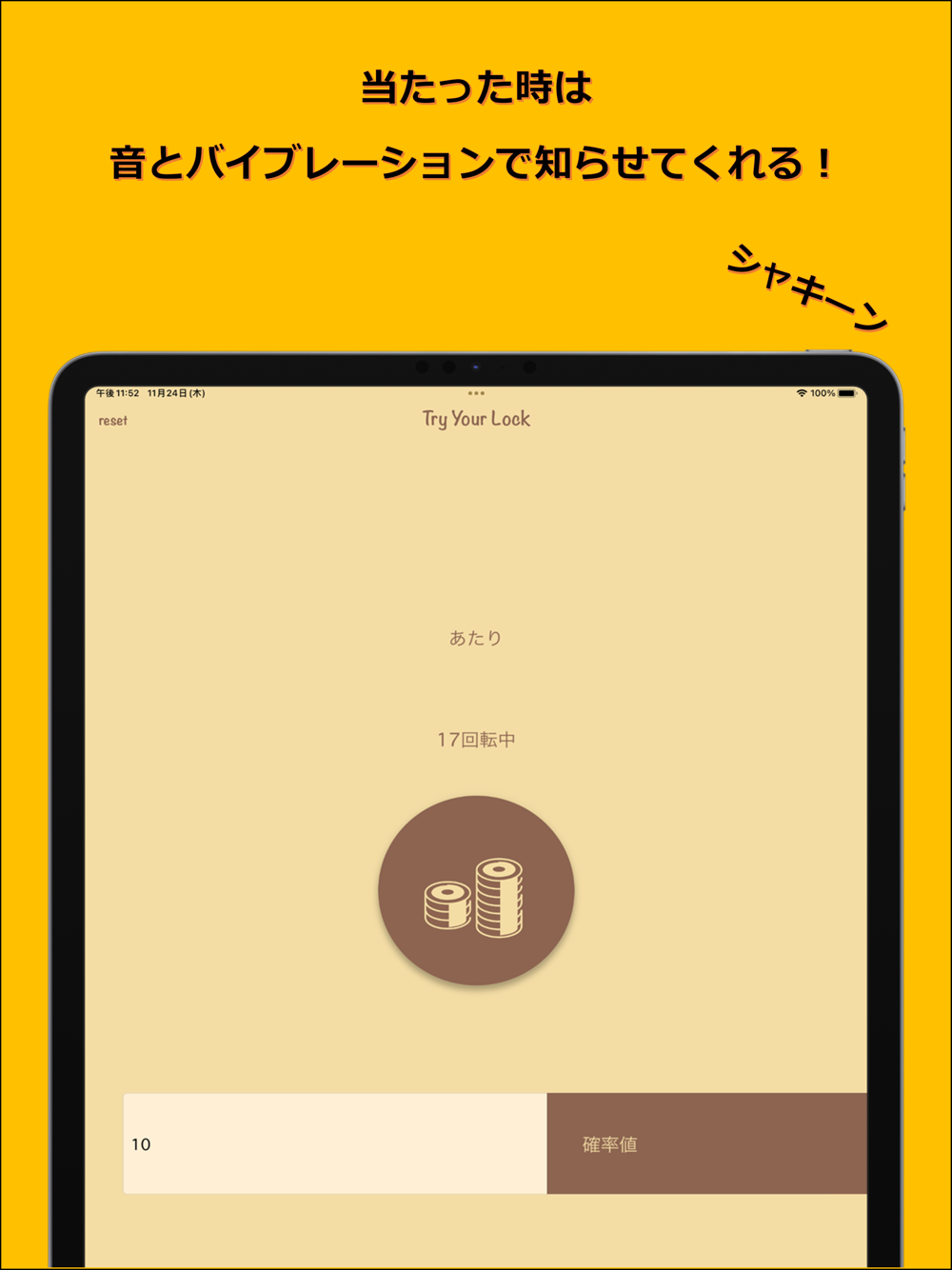 当たったは、音とバイブレーションで当たりを知らせてくれます。