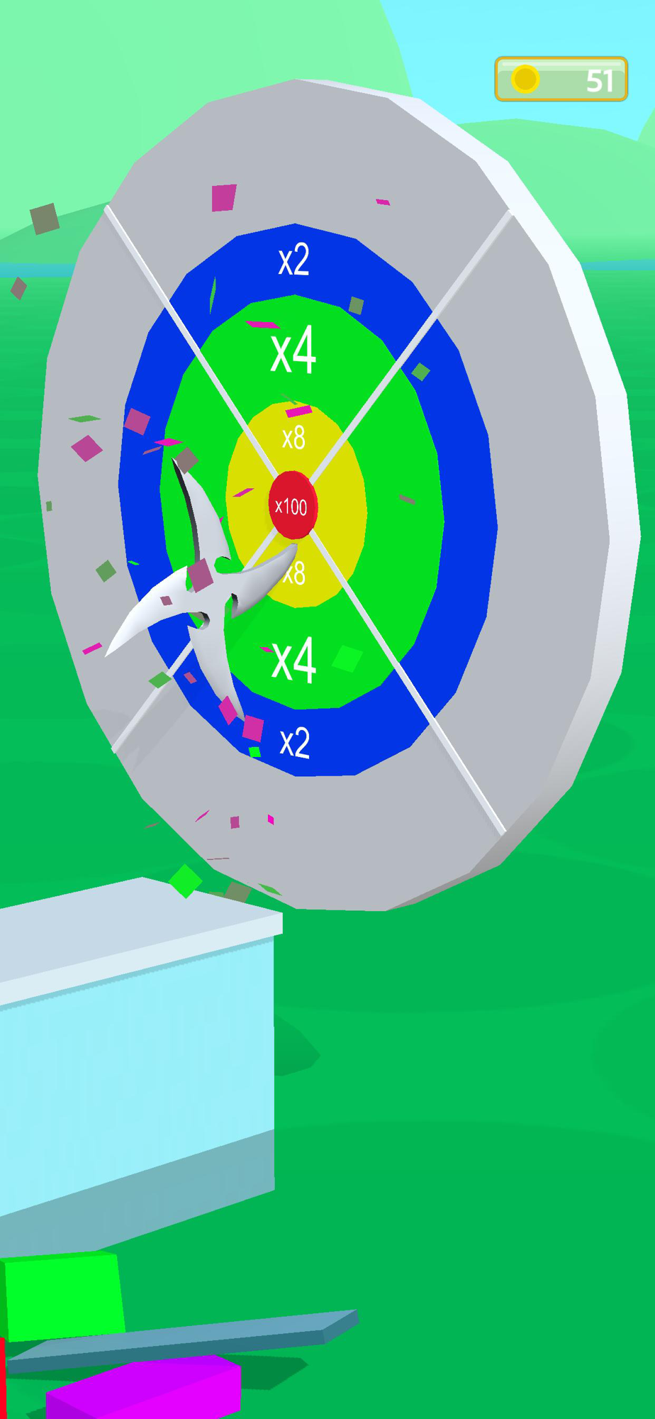 Simple controls will help you fully immerse yourself in the game. Drive the knife disc and get to the finish, cutting as many 3d objects as possible along the way. Slice em all! Multiply your points by hitting the bull's-eye. But most importantly: don't touch the cats !!!