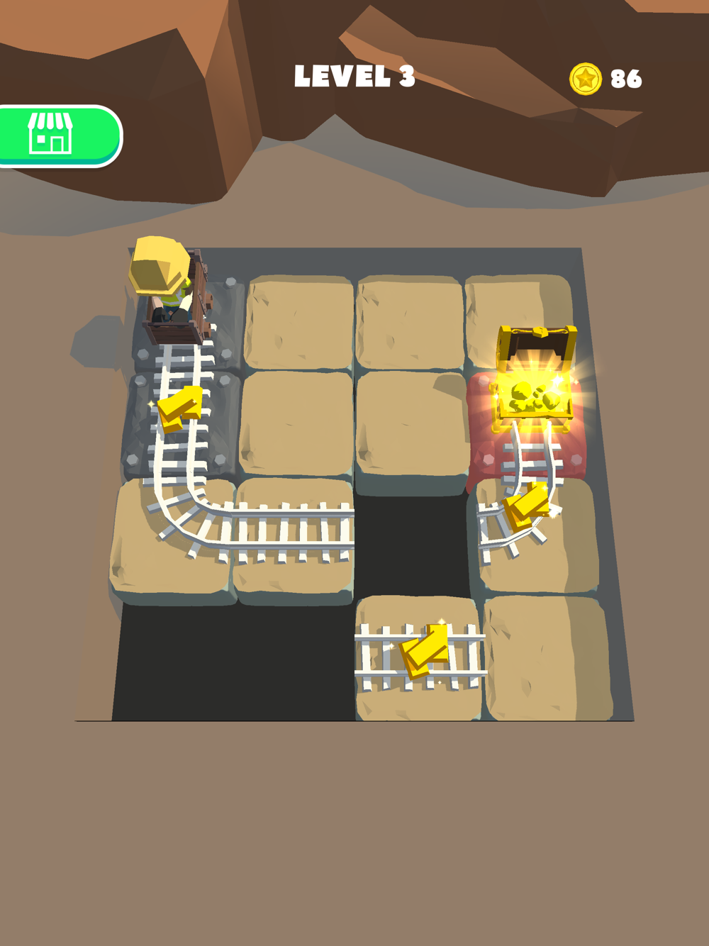 In this super fun and relaxing puzzle game, you lead a treasure hunter on a trolley to the treasure.