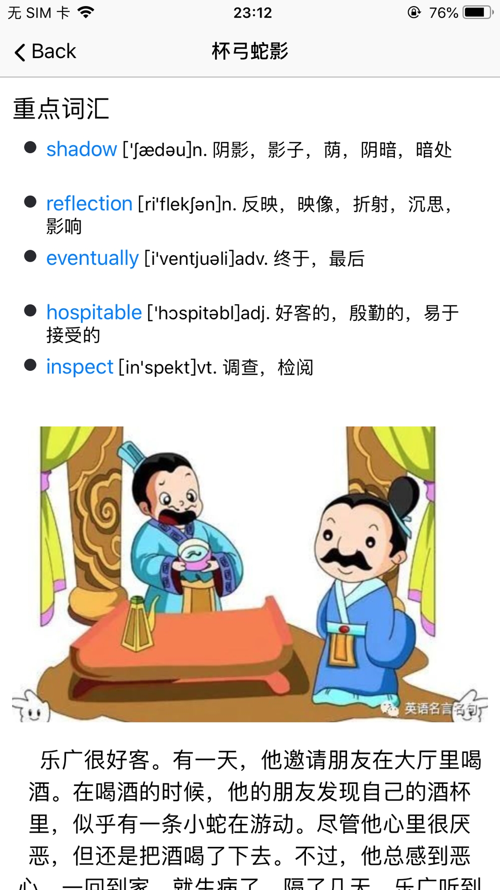 英语故事是一款简单易用的读故事的APP,包括不限于英语童话故事、英语小故事、英语寓言故事、英语成员故事、英语谚语故事、英语神话传说故事、英语诗歌故事、英语美文故事。所有故事数据均来源于互联网和所有用户的努力搜集/翻译。如果本软件侵犯到您的权益或名誉请及时联系我们,我们会第一时间处理并及时公布处理结果。本软件目的是为了让更多同学或有相关需要的人士提供一个平台可以更便捷阅读英语故事或提高英语阅读水平能力。本软件完全免费使用,联网时刷新会同步最新故事数据,所有同步的故事数据均支持完全离线阅读。