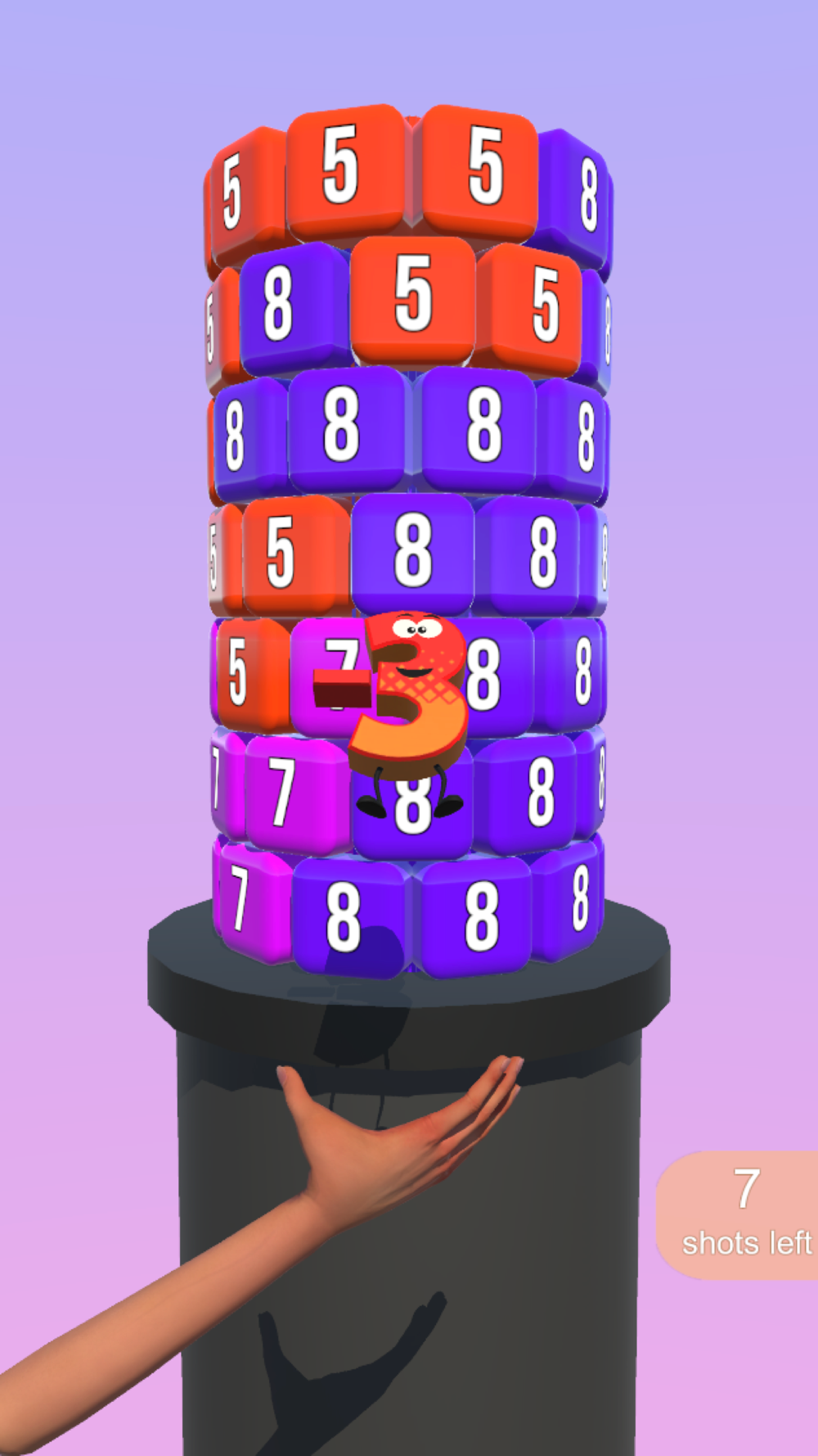 Swipe tower left-right to rotate, tap cell to shoot, easy! But number of shots is limited, not so easy!