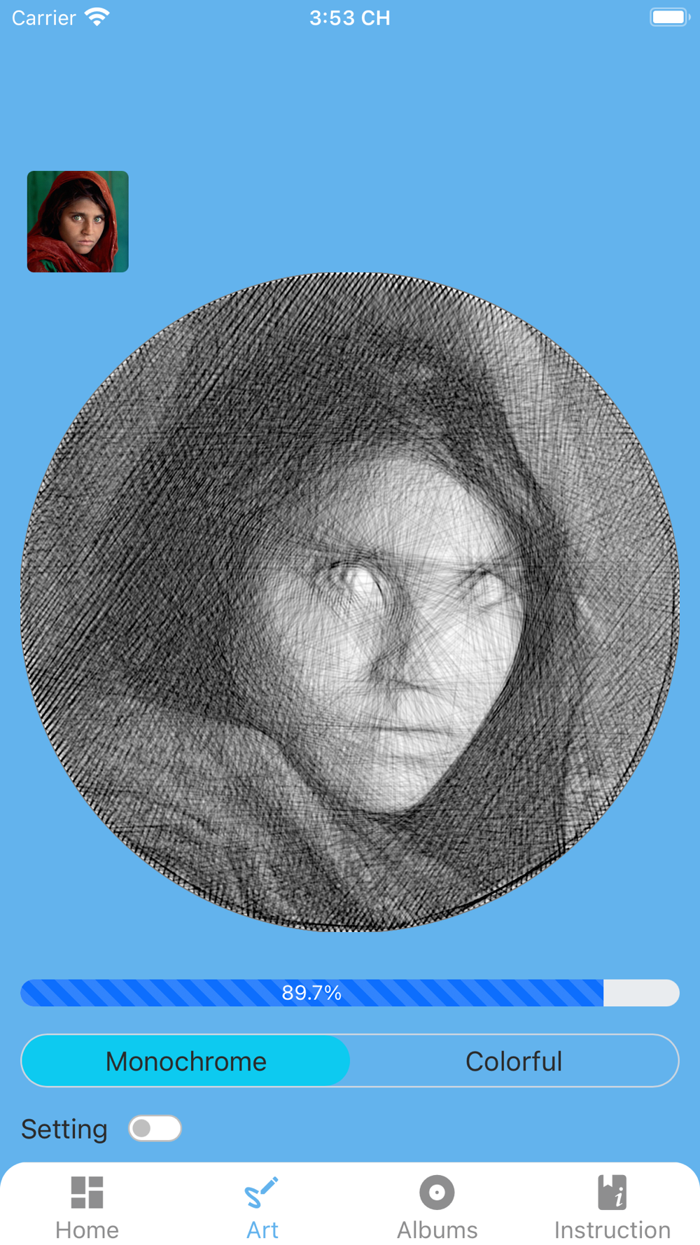 Create and guide painting with string art, with the best quality, unique monochrome and multicolor drawing mode.