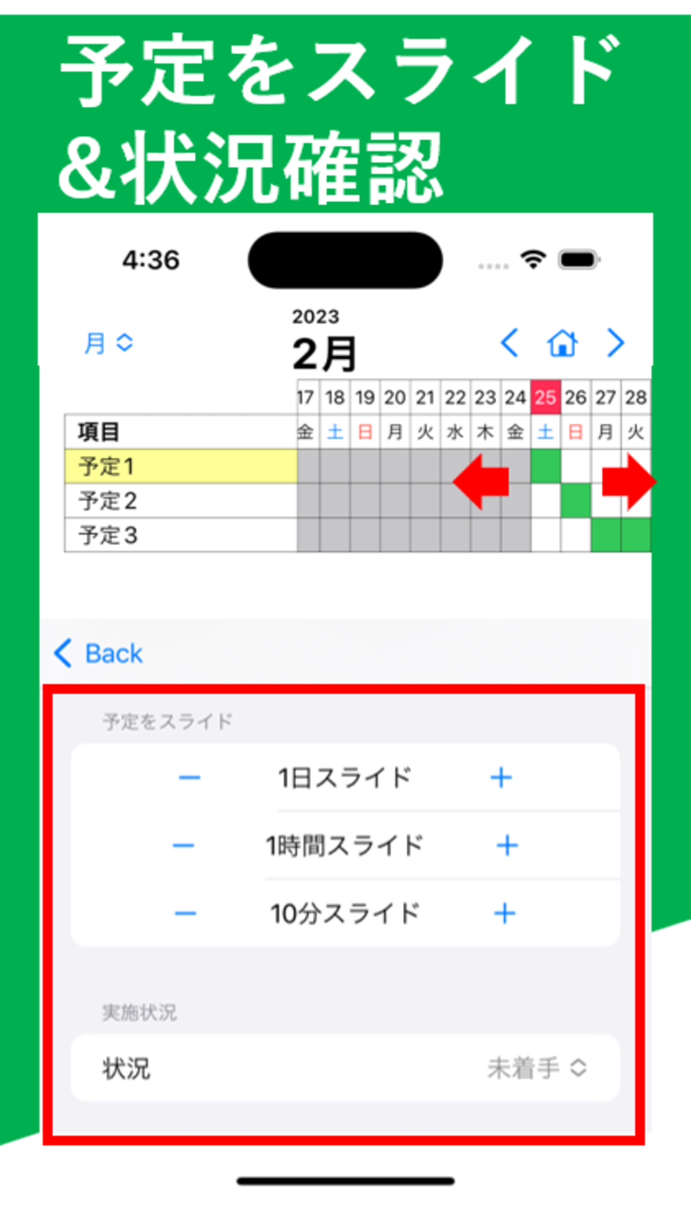 予定作成後に微調整することも可能。