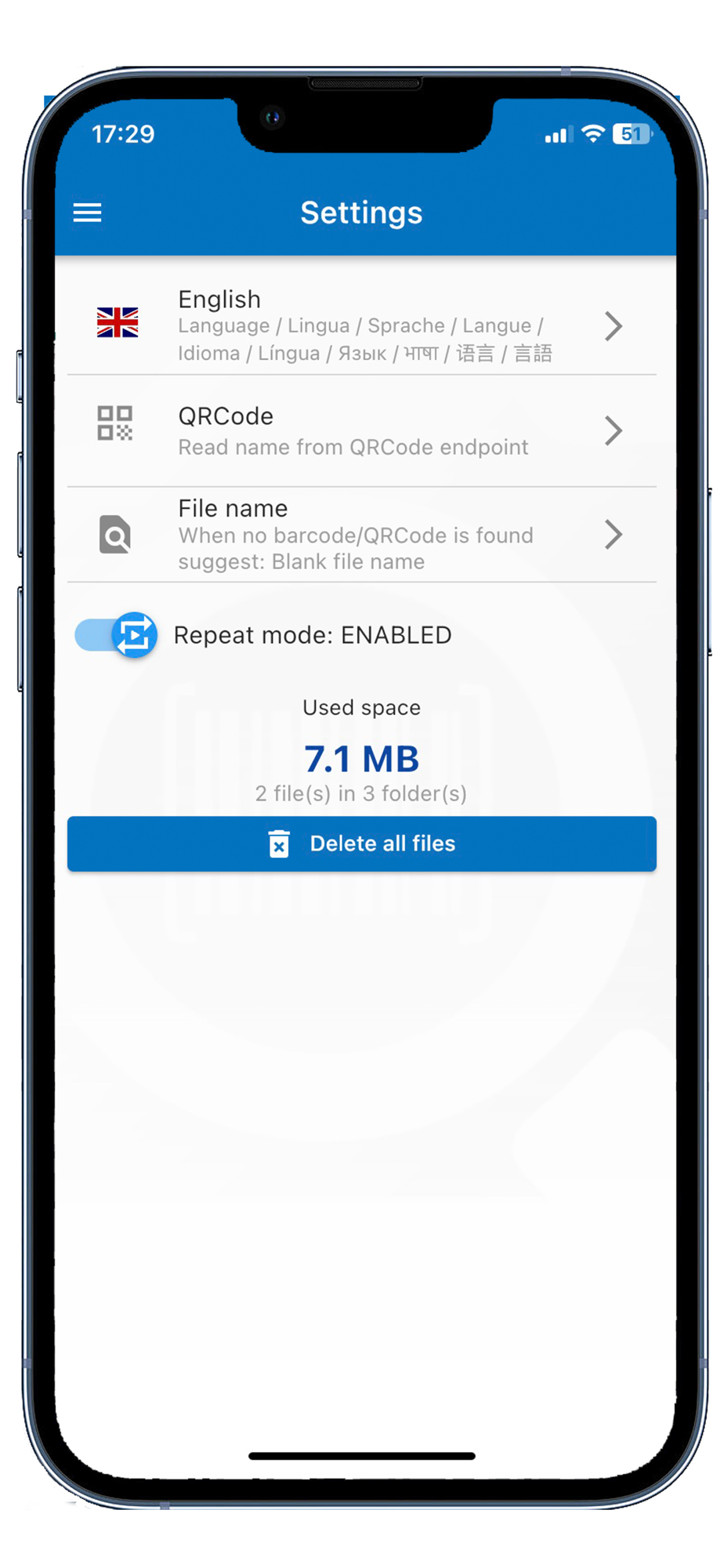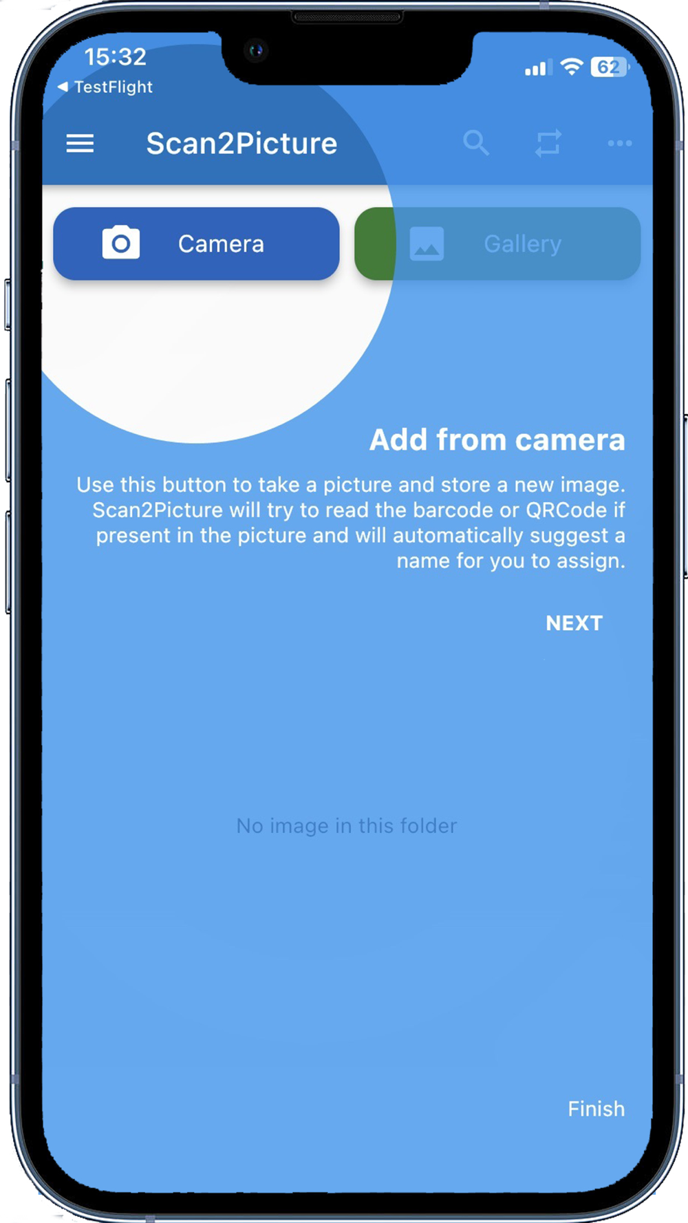 Scan2Picture helps you to catalog the images of your products, giving them a name based on the barcode or QRCode on the label.