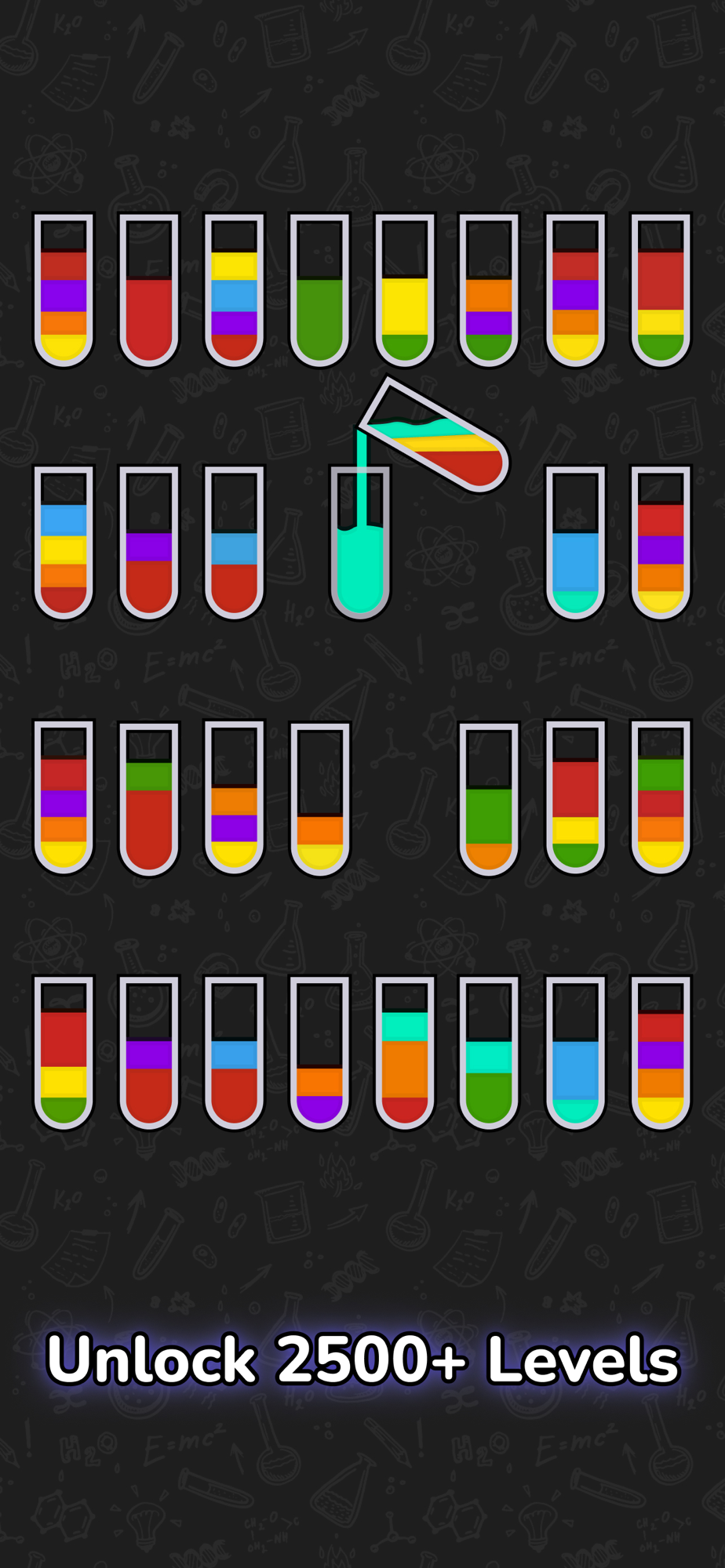-Clear the levels by sorting the water in the same color into the same bottles.