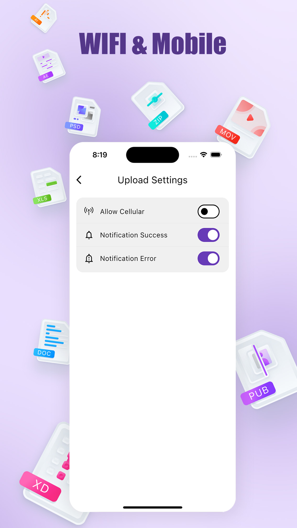 Support all file types for example upload ZIP, PDF, RAR, MOV, MP4, MKV, any file types you have.