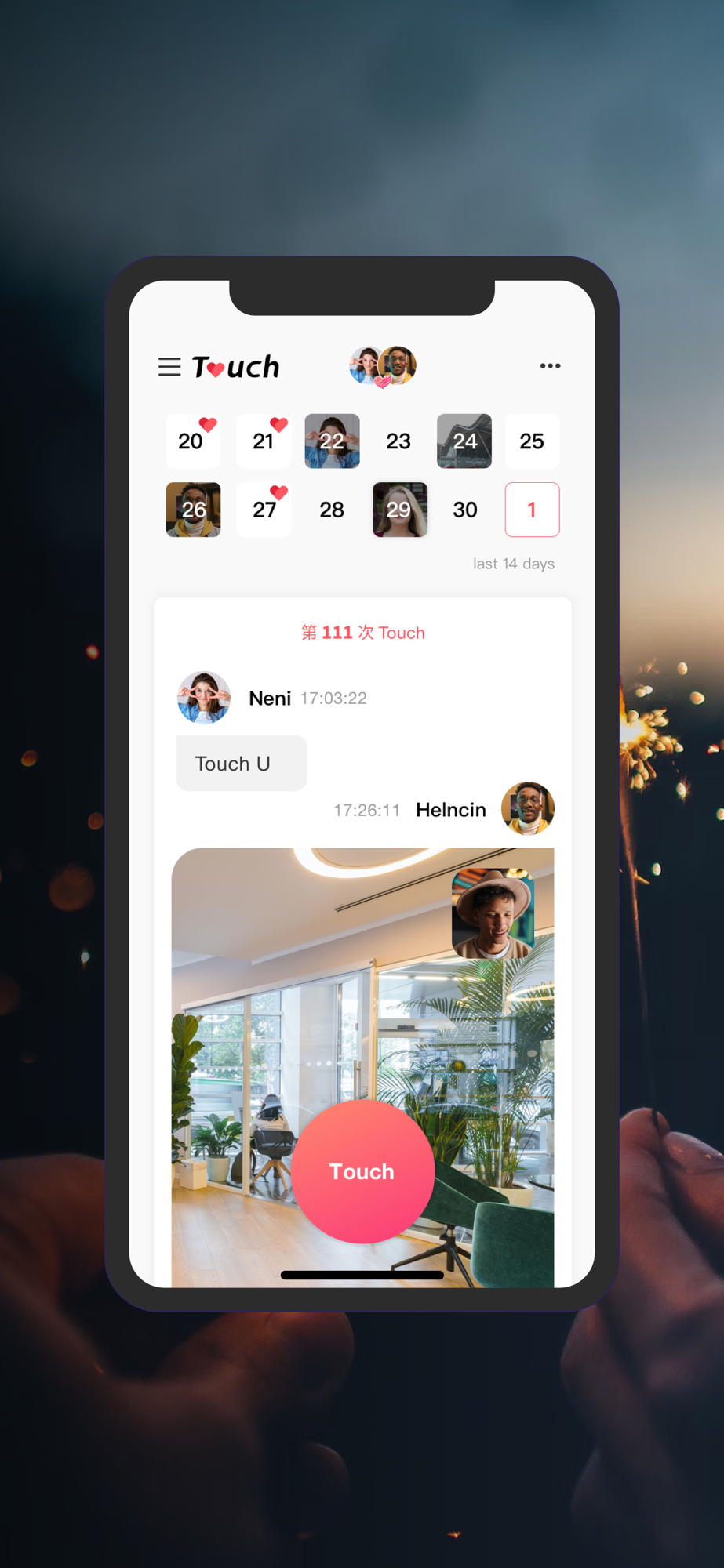 与重要的人绑定后,你们可以随时启动对话。每次交流就像一次Touch,让你随意分享当下所想、所感。