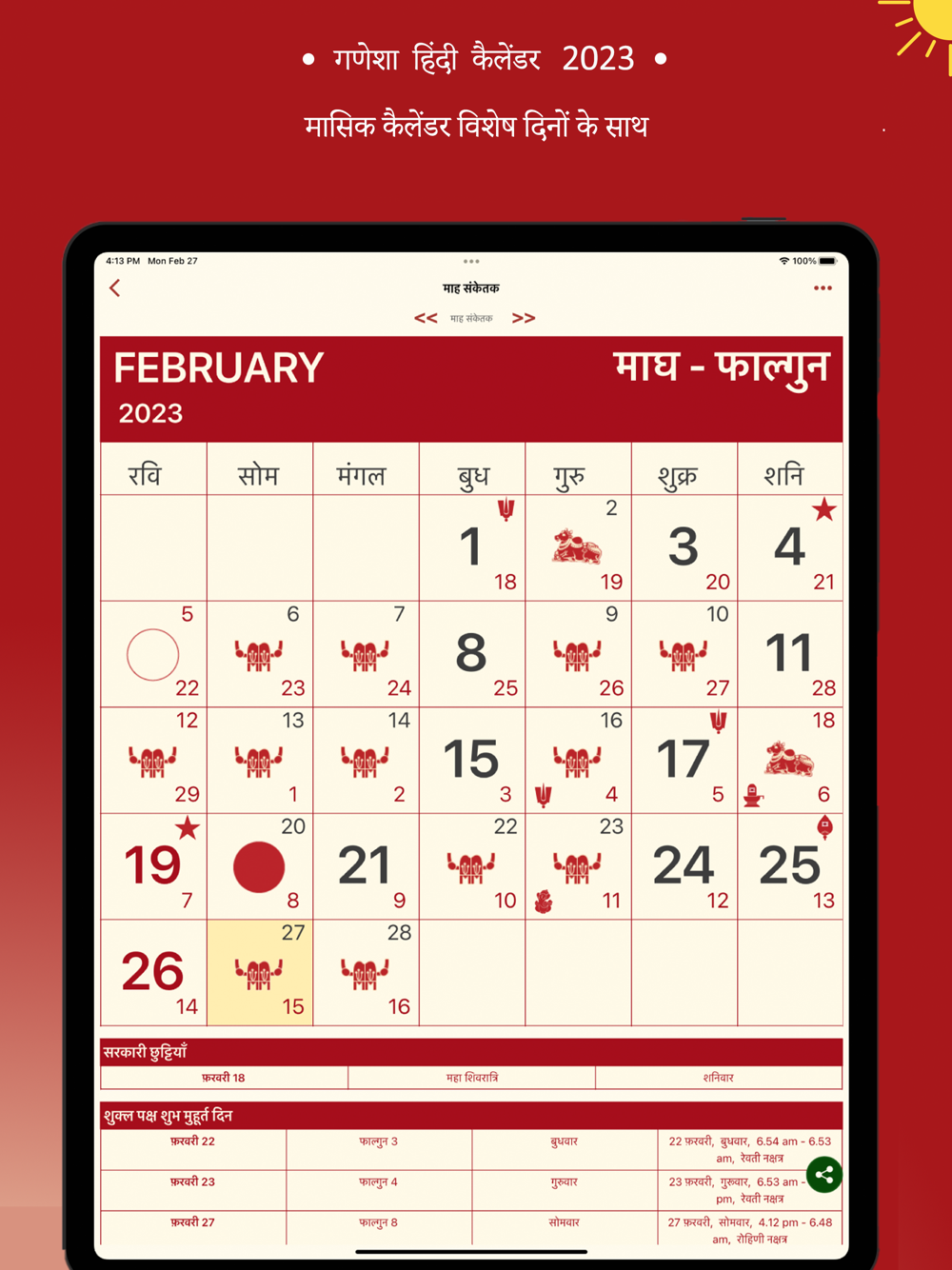 Here, we dedicate our beloved Ganesha Hindi Calendar 2023 app to all hindi language lovers. It contains several information in very simple intutive screens.
