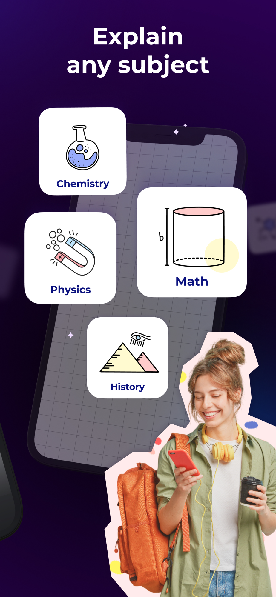 Solvely explains all levels of problems in any subject, from elementary school to college-level problems and above. Solvely's AI-powered solver tackles a wide range of math problems, including word problems and first encountered problems. Just take a photo and let Solvely explain it in steps. With Solvely, learning becomes a breeze, allowing you to breeze through your problems in no time.