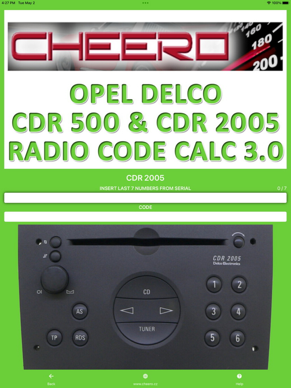 Calc for radios OPEL VAUXHALL model CDR500 and CDR2005 only DELCO ELECTRONICS not for VDO SIEMENS.