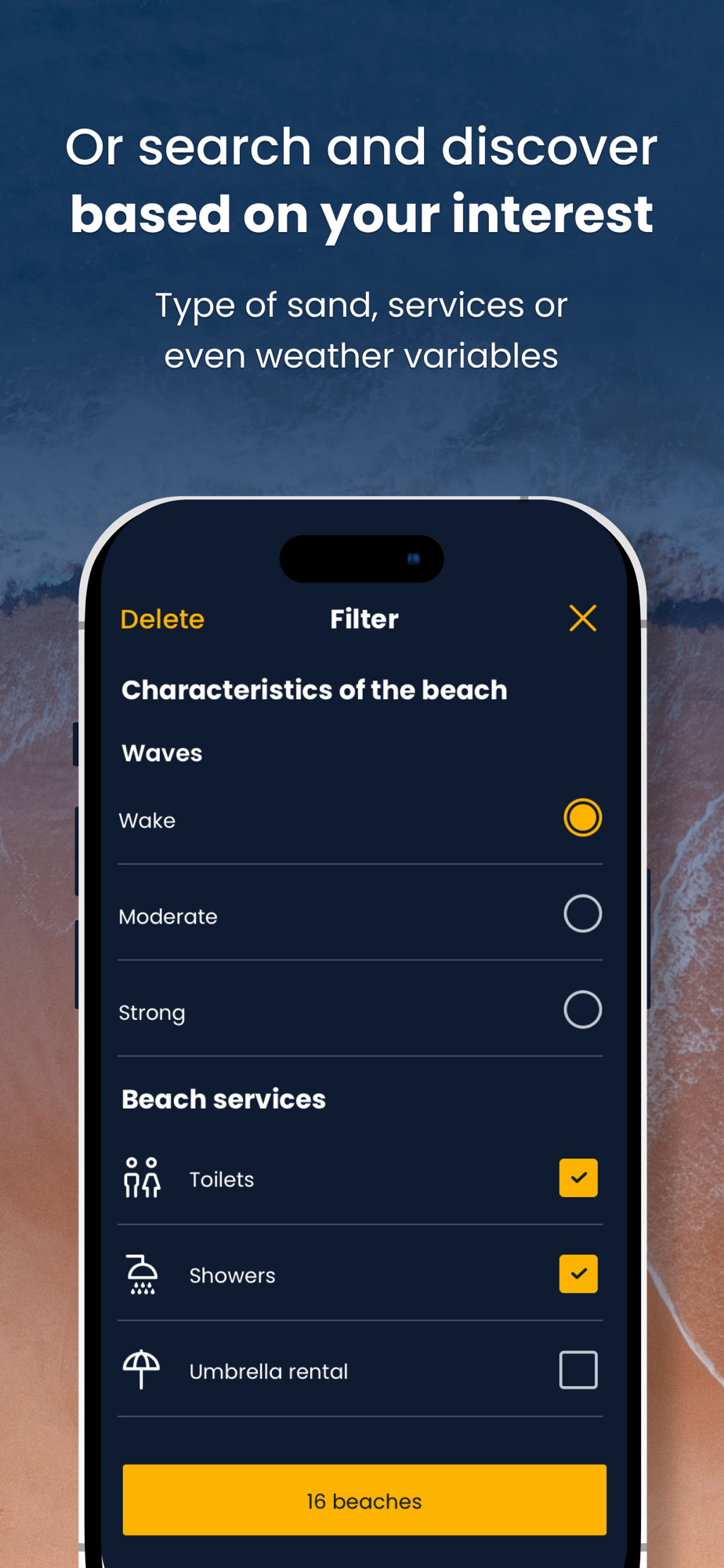 Weather information filters: We have filters so you can find beaches with the ideal weather characteristics for you, from temperature, probability of rain, wind, or waves.
