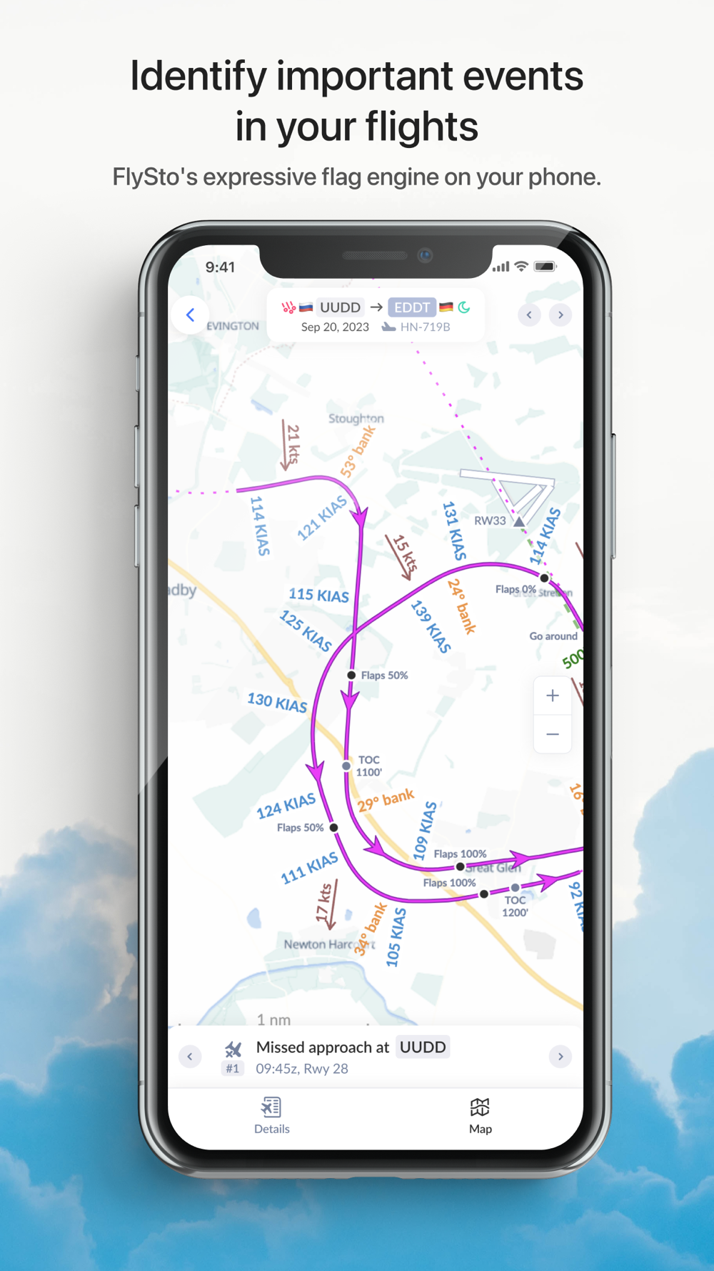 Quickly see all the details about your flights including flags, instantly review your landing limits and approach scoring values, get details on fuel consumption, and get a comprehensive analysis with up to 30+ calculated parameters and graphs about your flight. All at your fingertips in FlySto's new app. Fly safe, FlySto