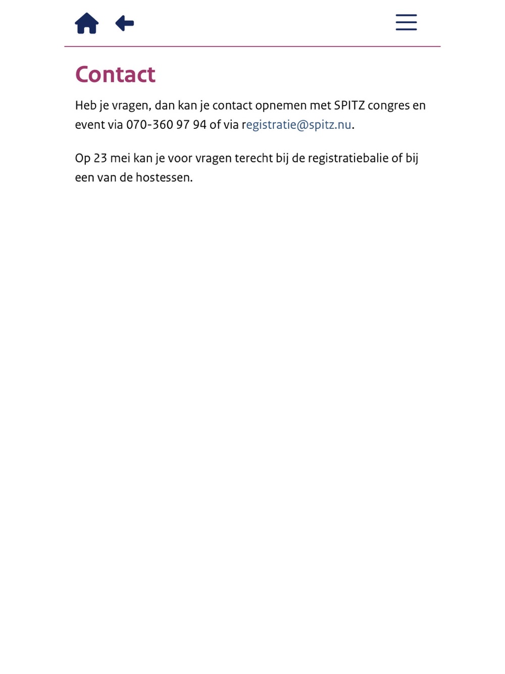 SPITZ congres en event BV respecteert de privacy van alle gebruikers van haar app en draagt er zorg voor dat de persoonlijke informatie die je ons verschaft vertrouwelijk wordt behandeld.