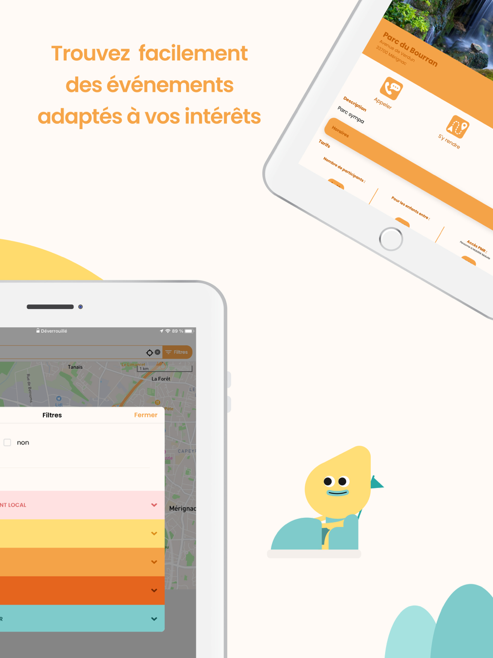 Une application simple et intuitive qui vous permet de trouver facilement les activités ou les événements éphémères autour de vous ou de la ville de votre choix.