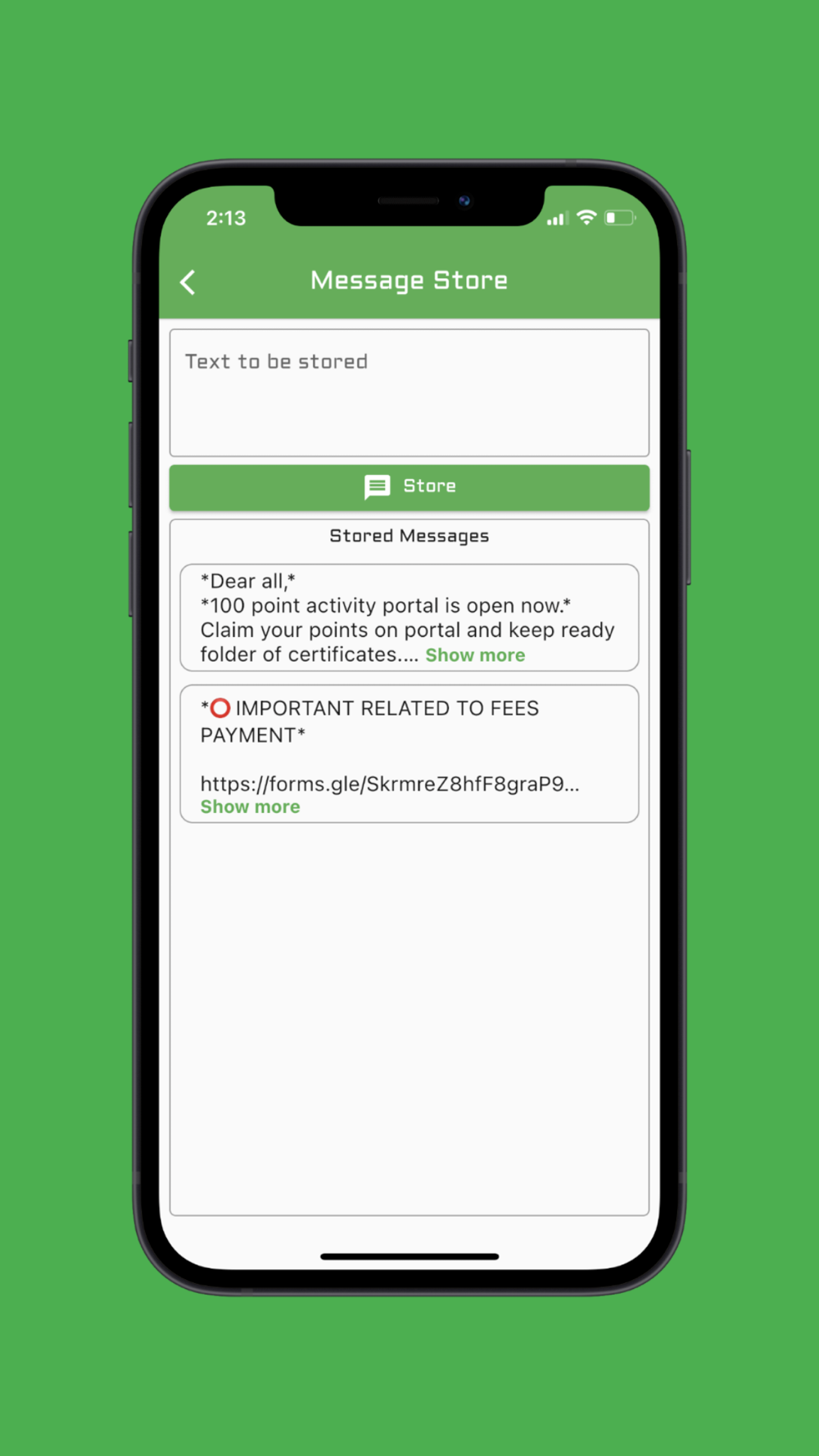 Message store has been added