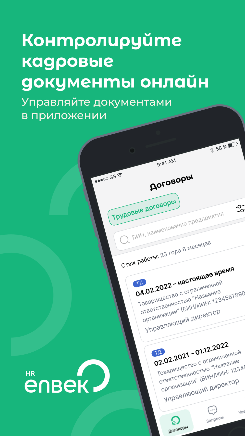 ENBEK HR — это приложение для работы с кадровыми документами онлайн. Вы можете видеть свои трудовые договоры, принимать или отклонять запросы личного дела от работодателей, отправлять запросы на корректировку данных по договорам, скачивать справку с места работы.