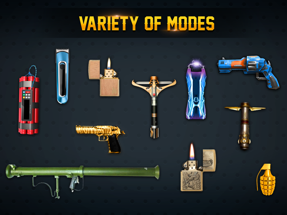 The high-quality gun sounds are animations in the shot Gun sounds - gun simulator simulator that includes gun vibration while firing, muzzle flash, and lighting effects. Instead of just playing the gun sounds - gun simulator, take your gadget and turn it into digital weapon sounds in gun sounds application ; all the necessary controls in gun simulator - shot gun sounds are close at hand when you are playing gun simulator. Gun simulator gun sounds give you an amazing idea to gun prank your friends with the real gun sounds.