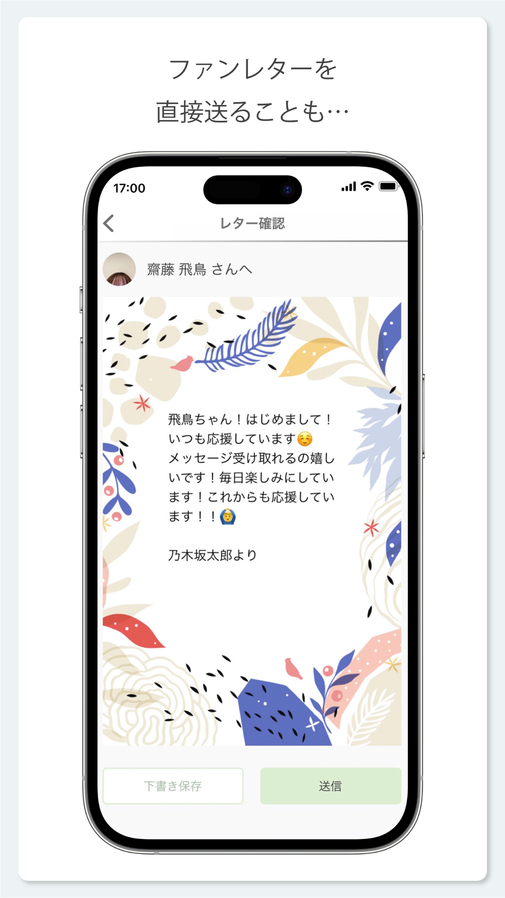 齋藤飛鳥にアプリを通じてレターが送れます。